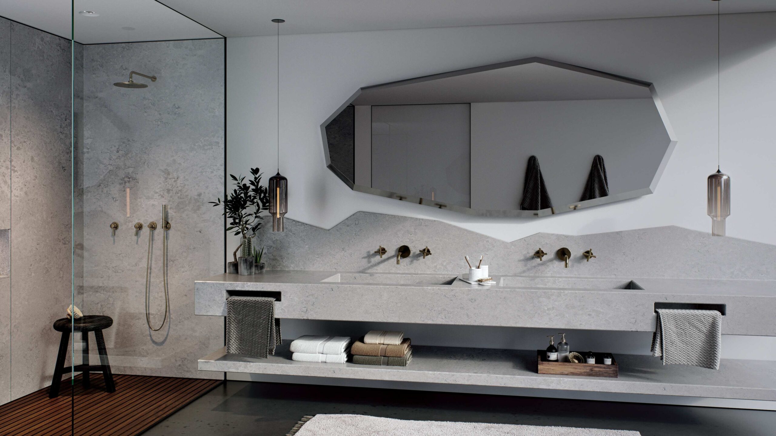 If you’re seeking a bright brand-new quartz surface for your kitchen or bathroom but don’t want to opt for a pure shade of white, Airy Concrete is guaranteed to impress. Featuring a pale grey base topped with a stunning marble effect of both lighter and darker hues, this quartz worktop will instantly add brightness to a room without appearing overwhelming. Stylish and chic, top-quality durability and resilience against damage is a given with Airy Concrete as part of your home. Specially fashioned using one of the toughest raw materials on the planet, natural quartz, carefully blended with pigments and resins to create a truly robust structure, this worktop is certain to stand the test of time with ease. Simple to keep clean and designed to complement a variety of existing interior styles, Airy Concrete won’t let you down.