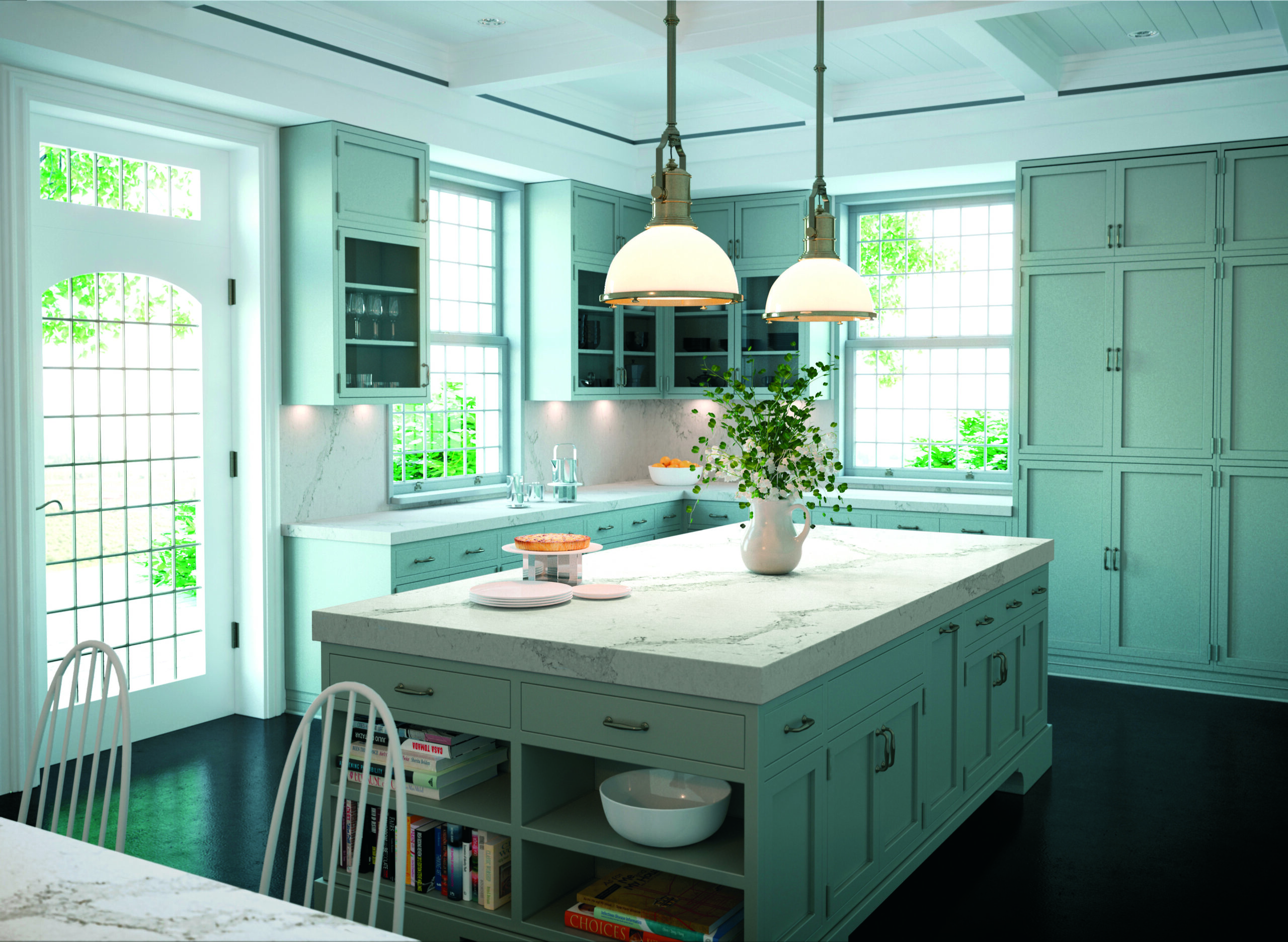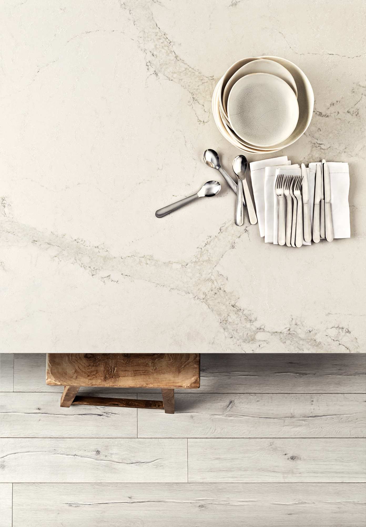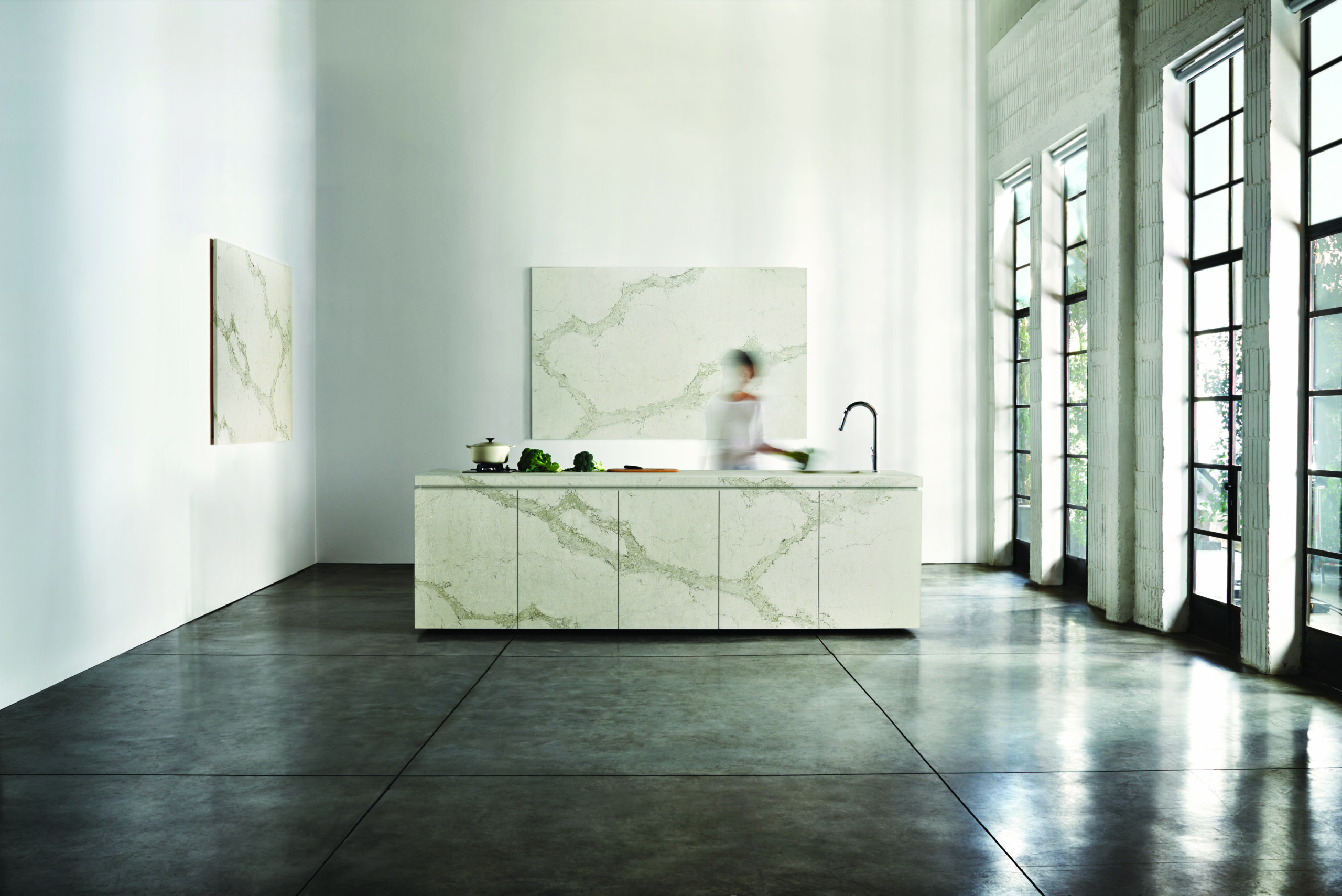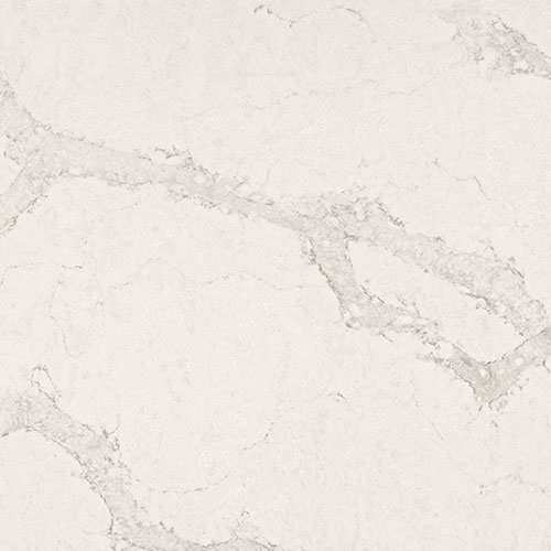Eye-catching both up close and from a distance, the Calacatta Nuvo quartz worktop offers premium luxury in both structure and style. Featuring a classic cream base reminiscent of renaissance marble, this worktop features bold grey-toned veining to create dramatic lines within its entire design. Certain to make a statement without involving garish bright colours or overwhelming current furnishings, Calacatta Nuvo is sure to suit a variety of personal tastes and complement many existing interior styles. Suitable for both kitchens and bathrooms with its distinctive yet bright pattern and colour scheme, this quartz worktop also boasts unparalleled durability difficult to find elsewhere. Made using an expert combination of resins and pigments bonded with natural quartz, Calacatta Nuvo is a real triumph.