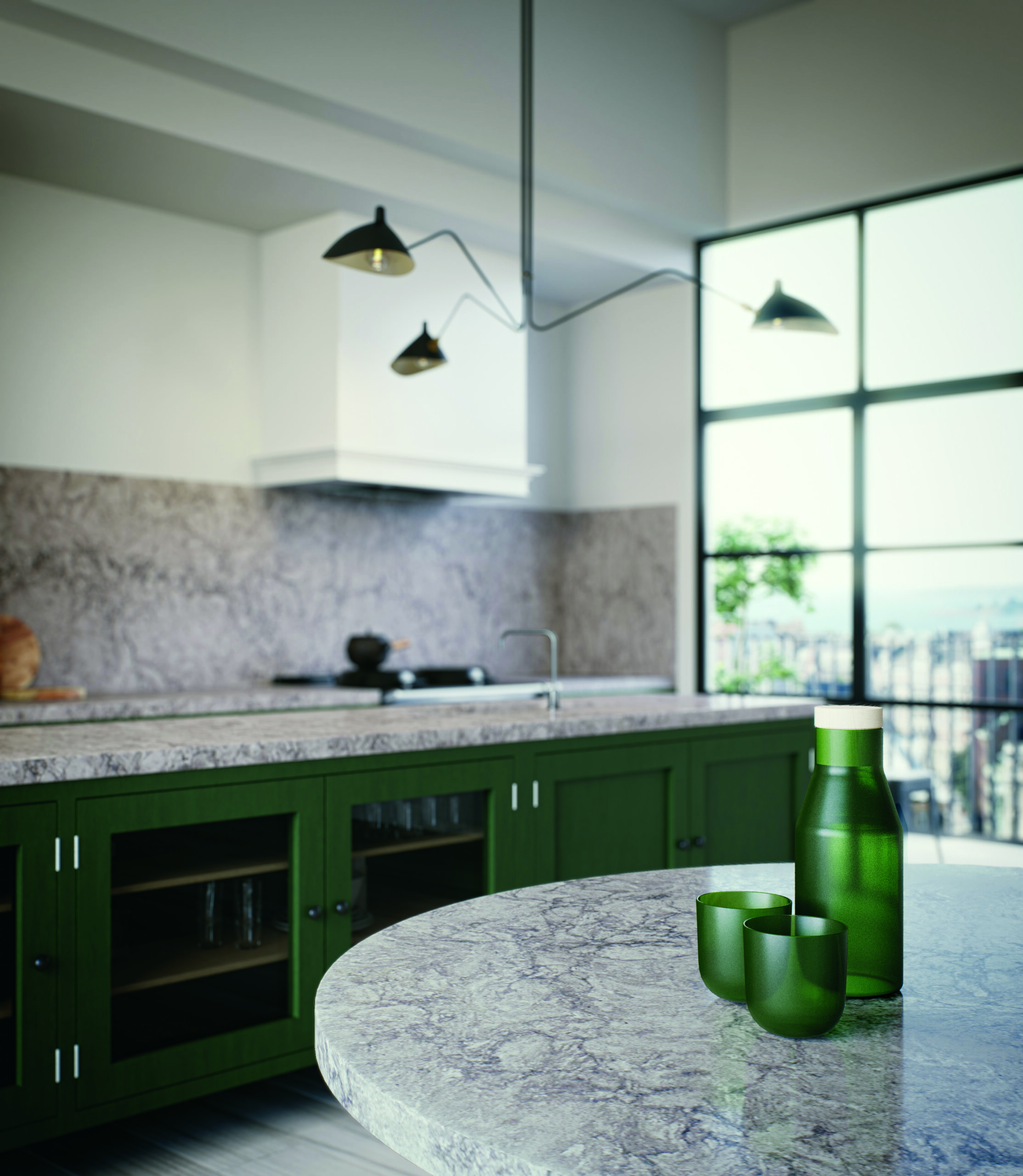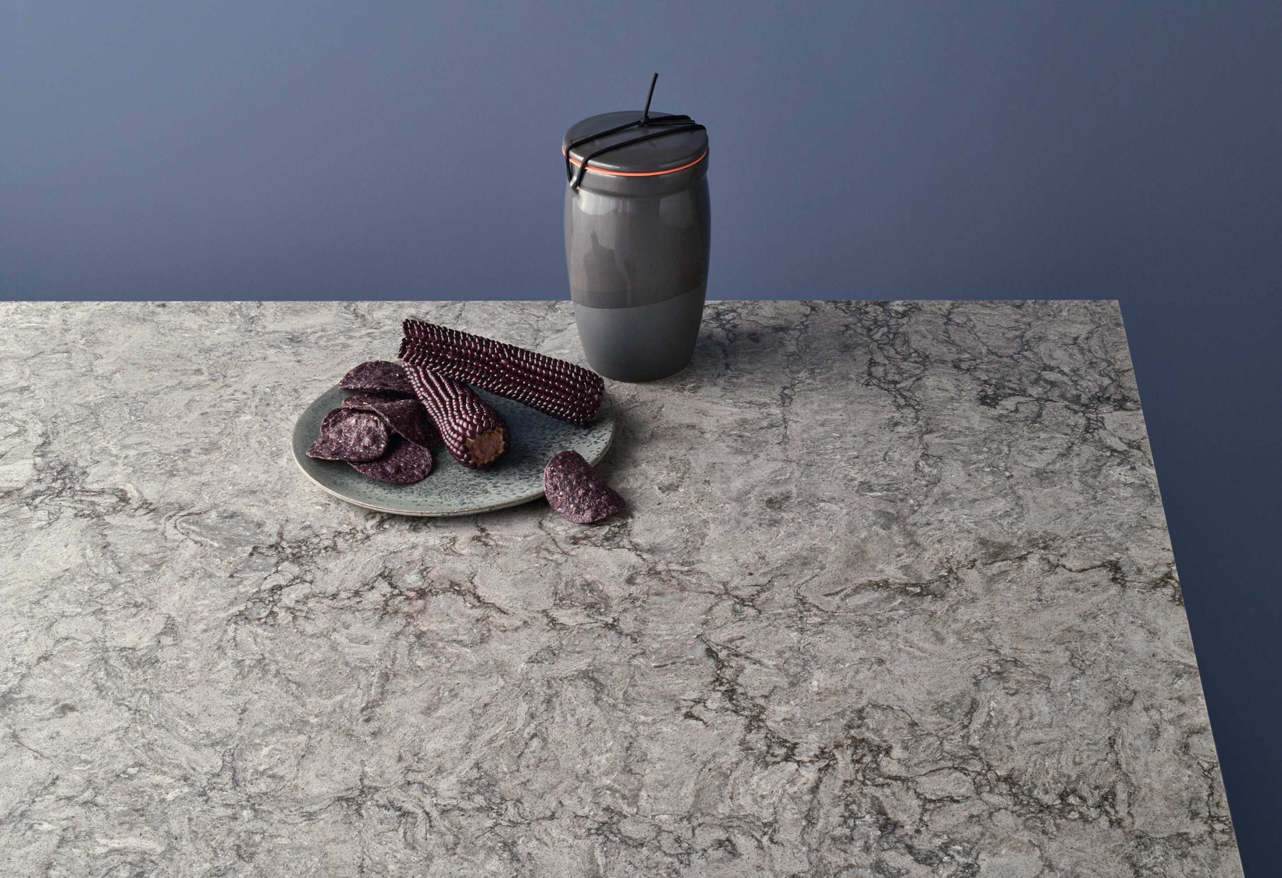 With its dramatic swirls and deep grey base, the Turbine Grey quartz worktop is a real triumph. Perfect for both bathrooms and kitchens due to its robust structure and cool-toned colour scheme, this worktop’s swirling pattern will instantly add drama to the appearance of your chosen room without appearing overwhelming against existing furnishings. Providing an ideal balance between neutrality and bold style, Turbine Grey is certain to complement most home interiors. Better still, its durable composition of natural quartz (one of the toughest raw materials known to man) bonded with multiple resins and pigments, longevity and reliable strength are yours for the taking. Superbly resistant against damage and typical wear and tear often endured by plastic or wooden alternatives, Turbine Grey is a real force to be reckoned with.