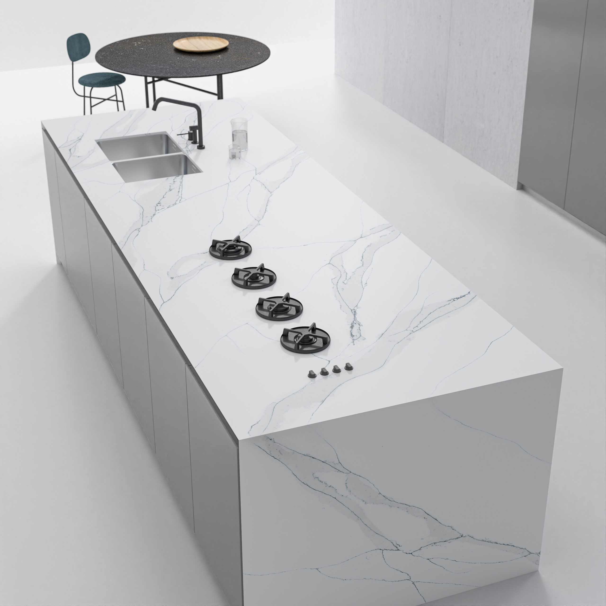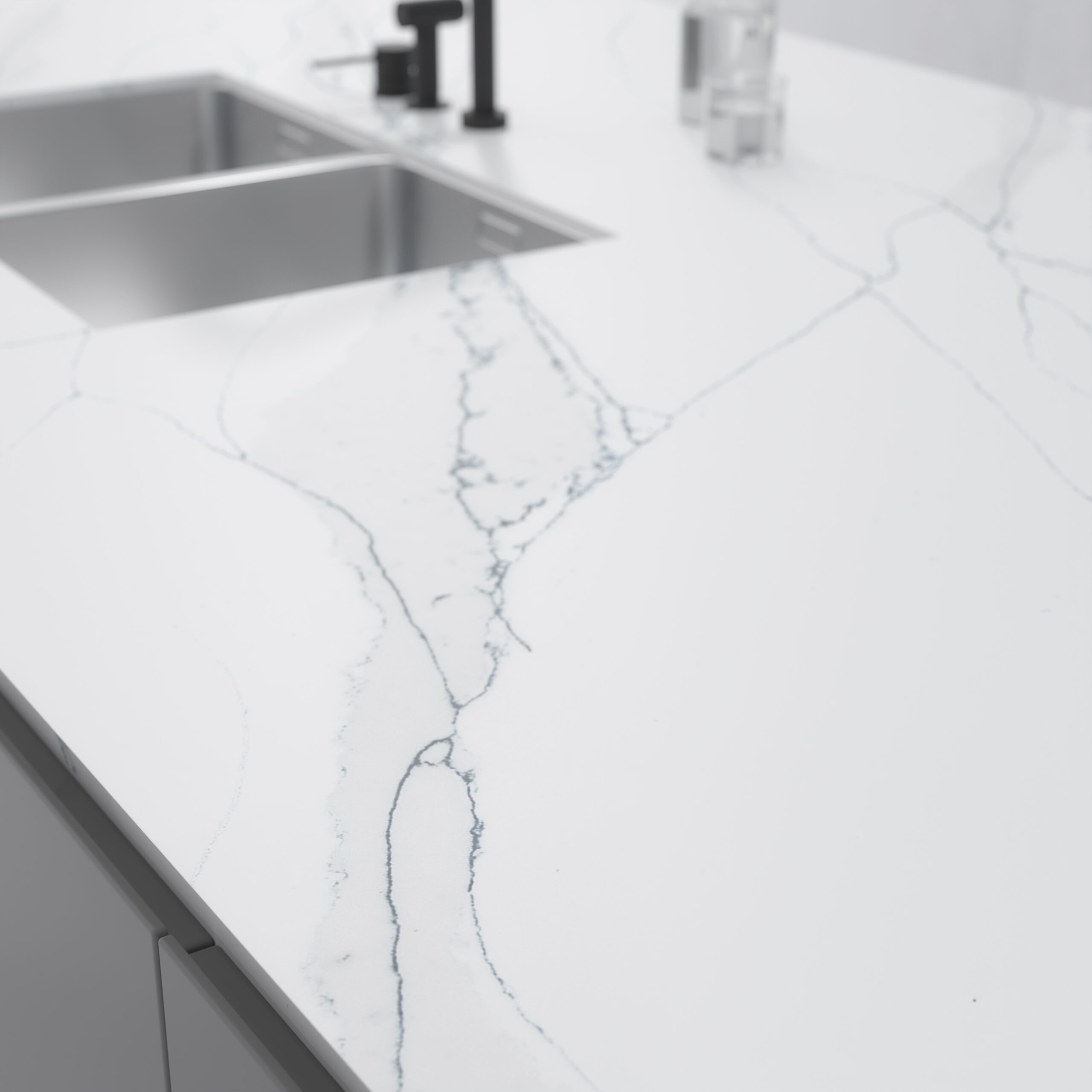 Compac Calacatta Blue quartz exudes luxury with its stunning white base and bold blue veining, capturing the look of natural marble with the resilience and ease of maintenance of quartz. Ideal for kitchen worktops, this exquisite surface combines the timeless beauty of marble with the practical benefits of engineered stone. It’s perfect for those desiring a dramatic and elegant aesthetic that stands up to the demands of daily use. Whether updating a kitchen or designing a new space, Compac Calacatta Blue quartz delivers sophistication and durability, ensuring a lasting impact in any home.