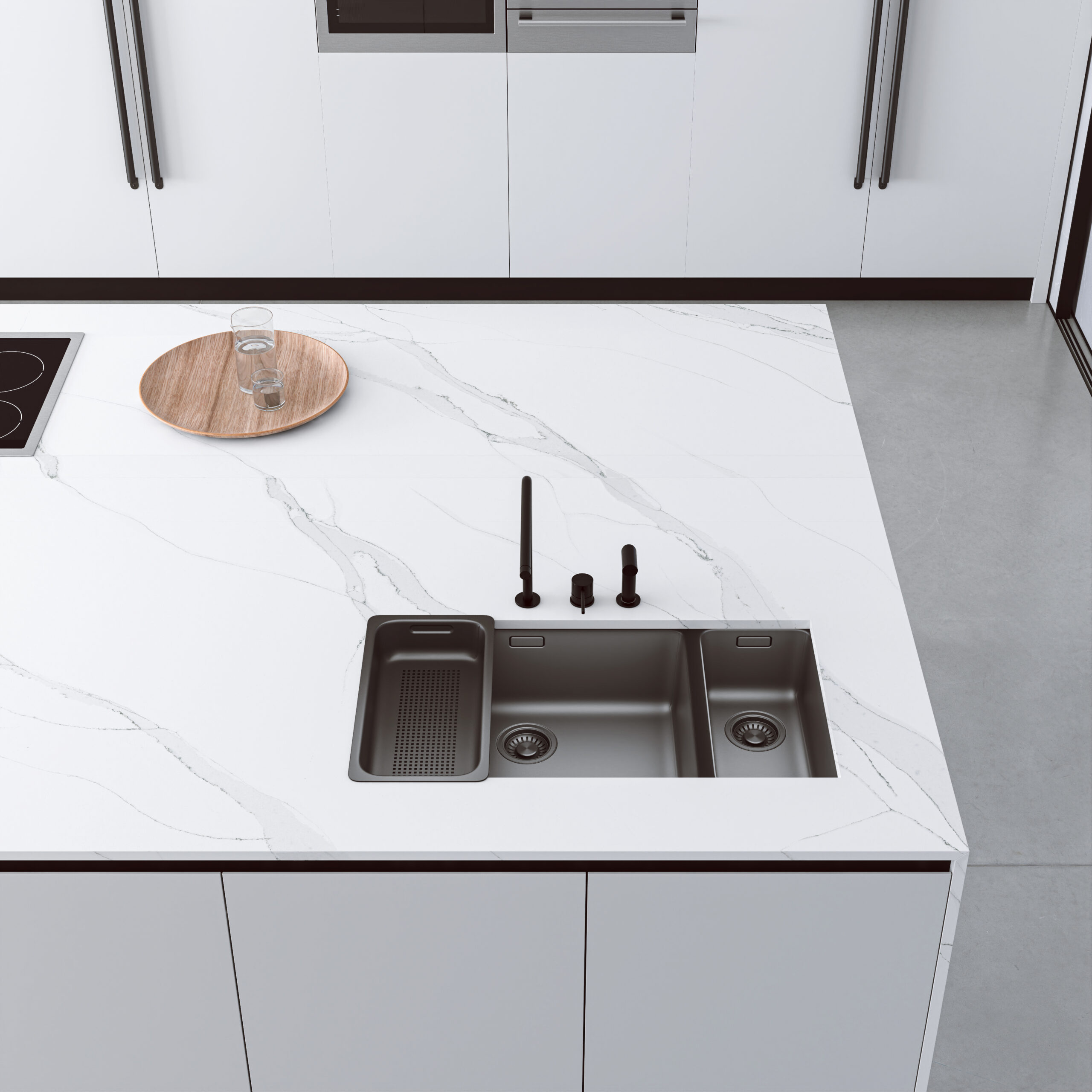 Compac Calacatta Green quartz redefines elegance with its striking white base and vibrant green veining, providing a luxurious and unique appearance perfect for kitchen worktops. This eye-catching design is part of Compac’s Unique Collection, which is known for merging the classic beauty of Calacatta marble with bold, contemporary colors. Beyond its aesthetic appeal, Calacatta Green quartz offers durability and practicality, resisting stains and scratches to maintain its beauty under daily use. Ideal for those seeking a standout feature in their kitchen, it combines timeless elegance with a modern twist, ensuring both style and functionality.