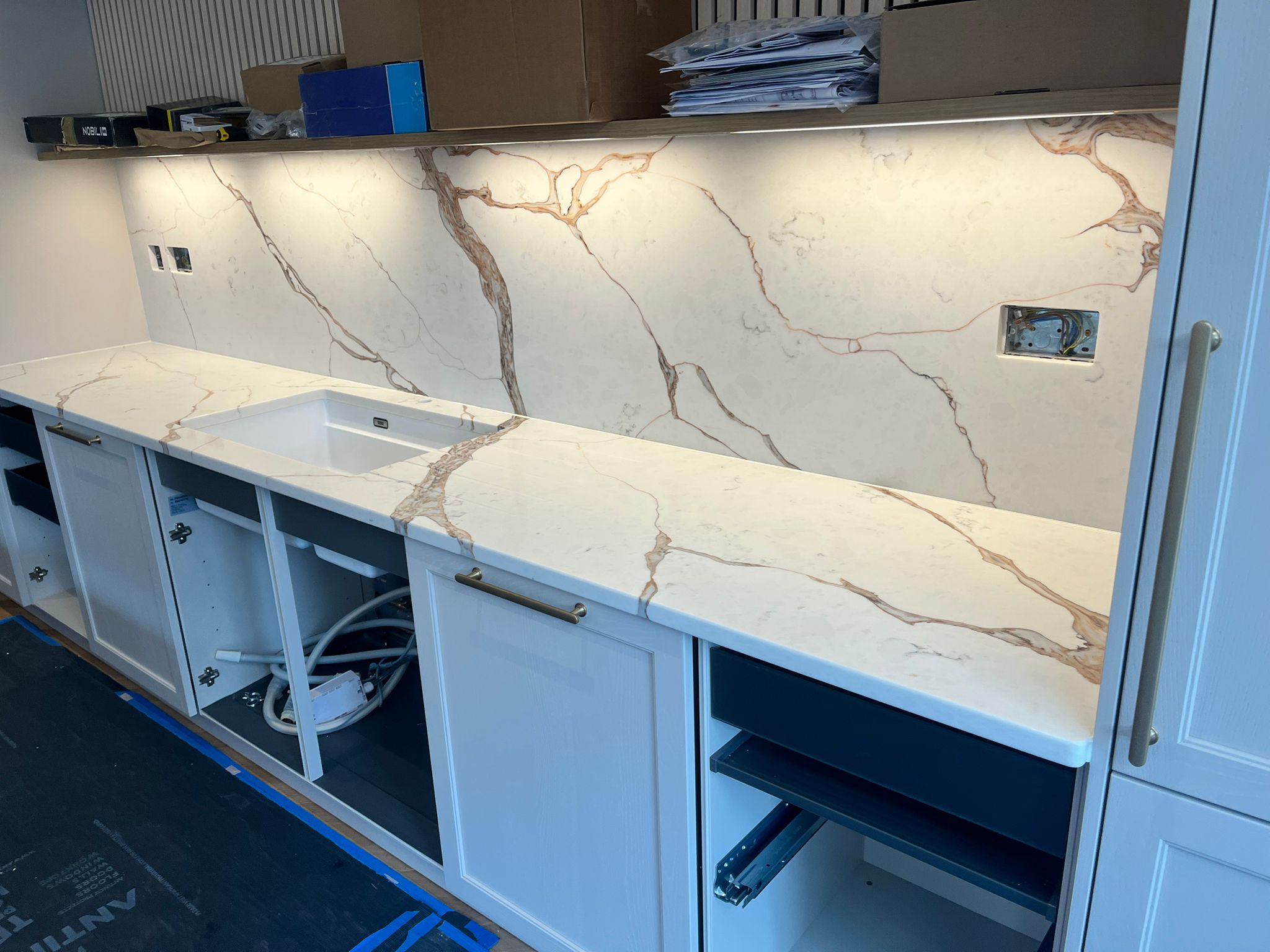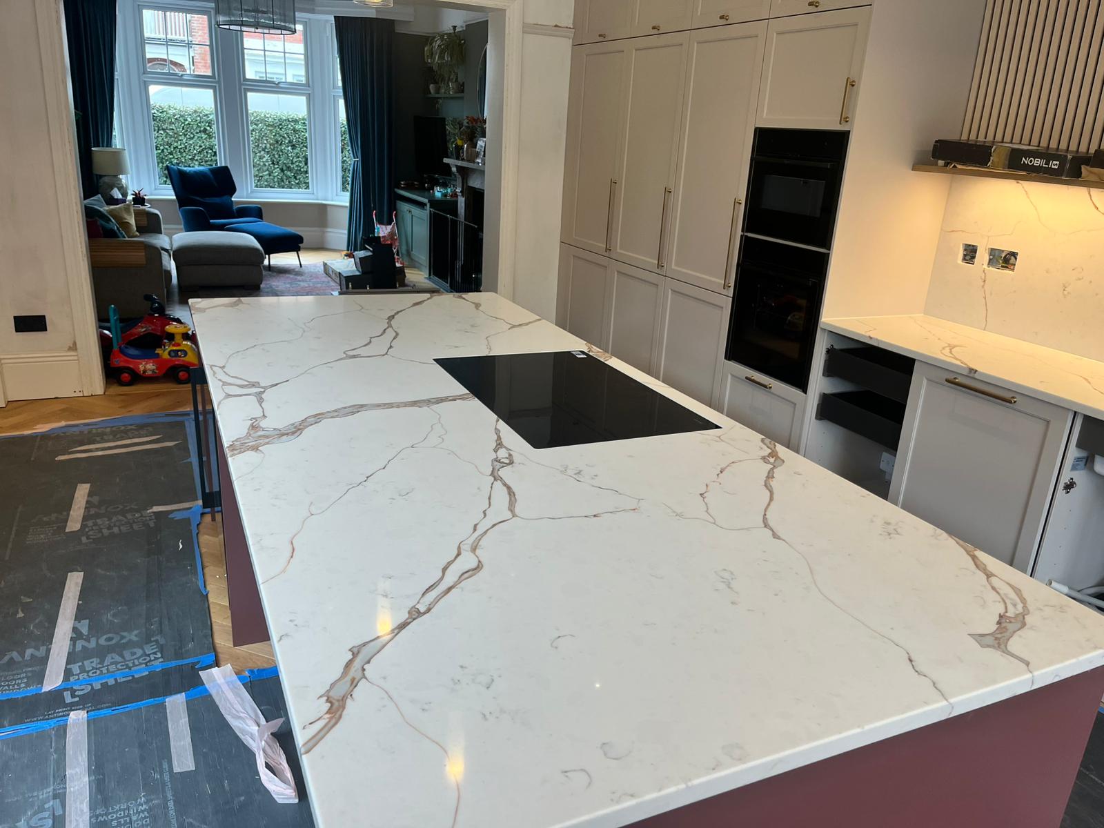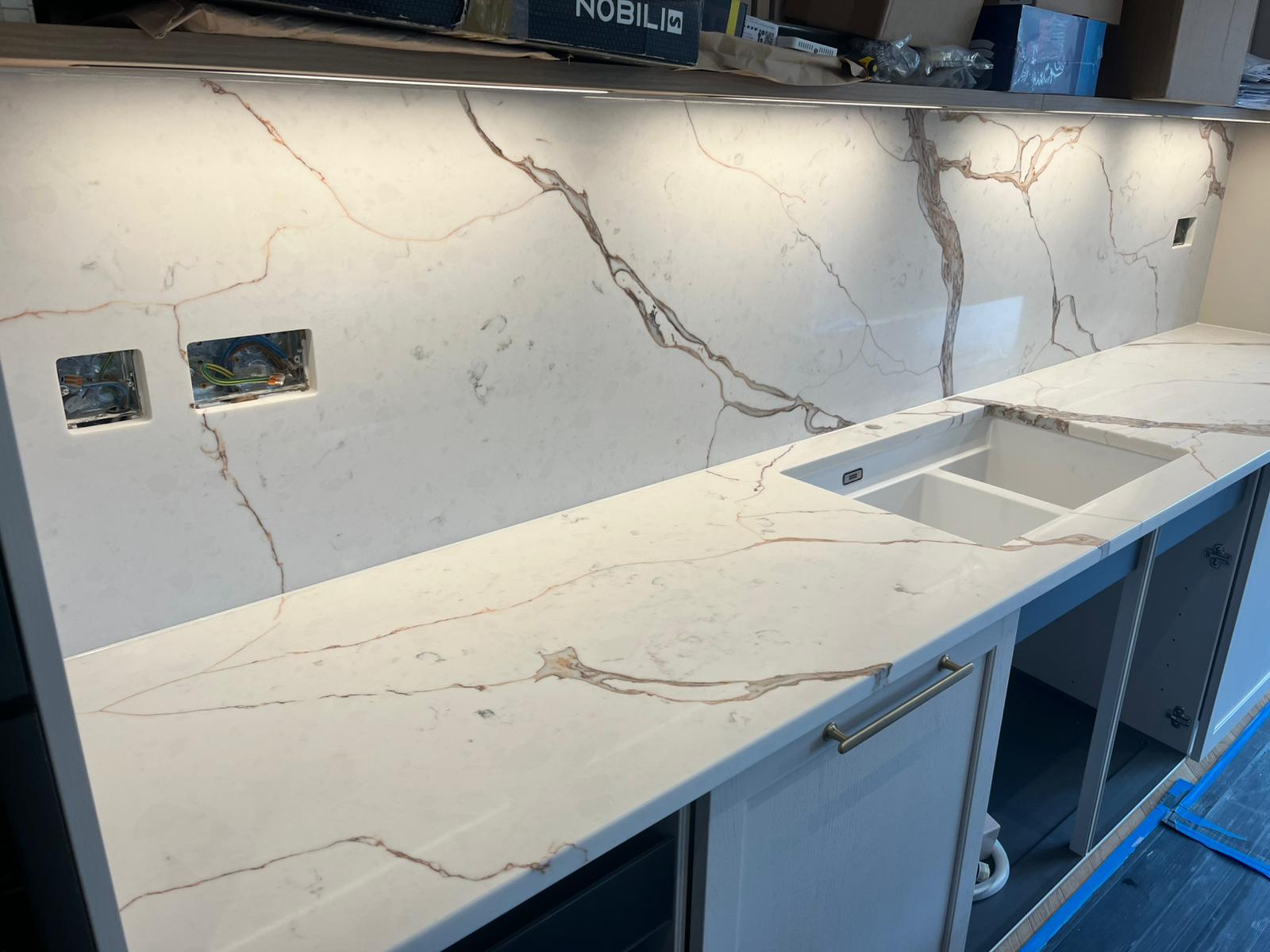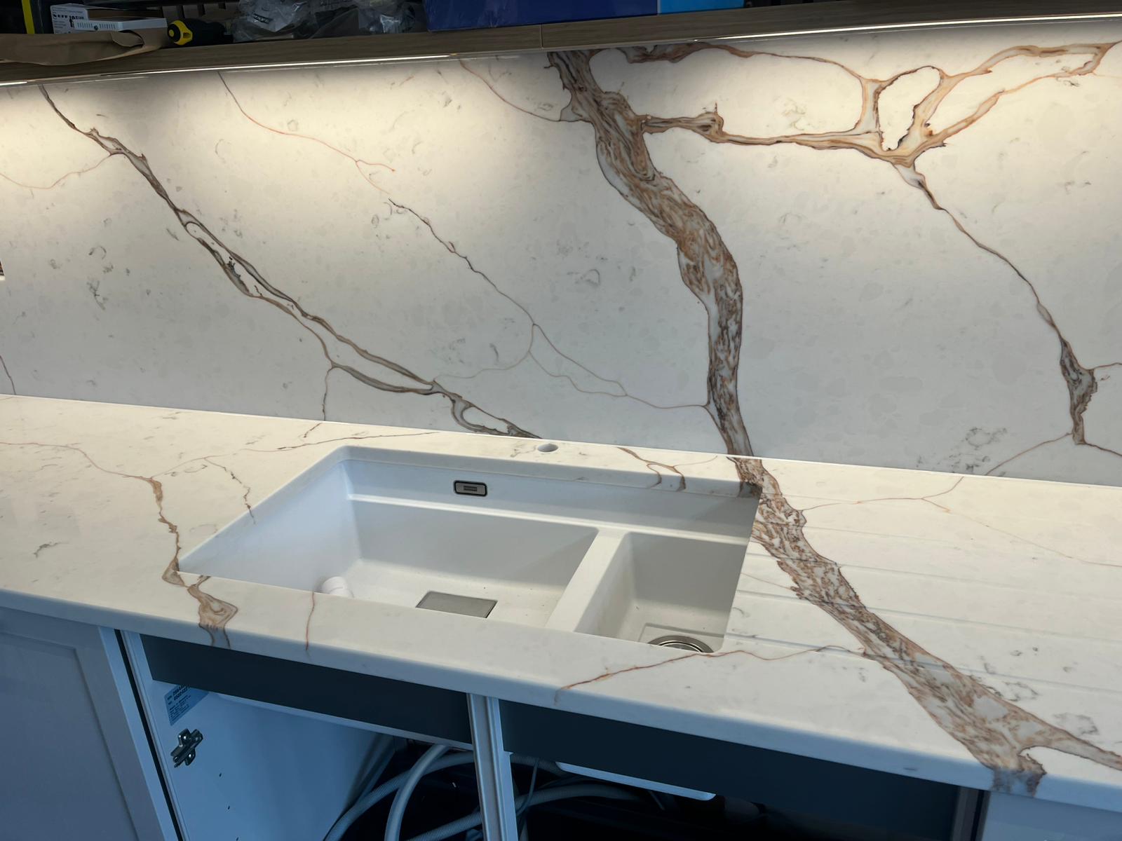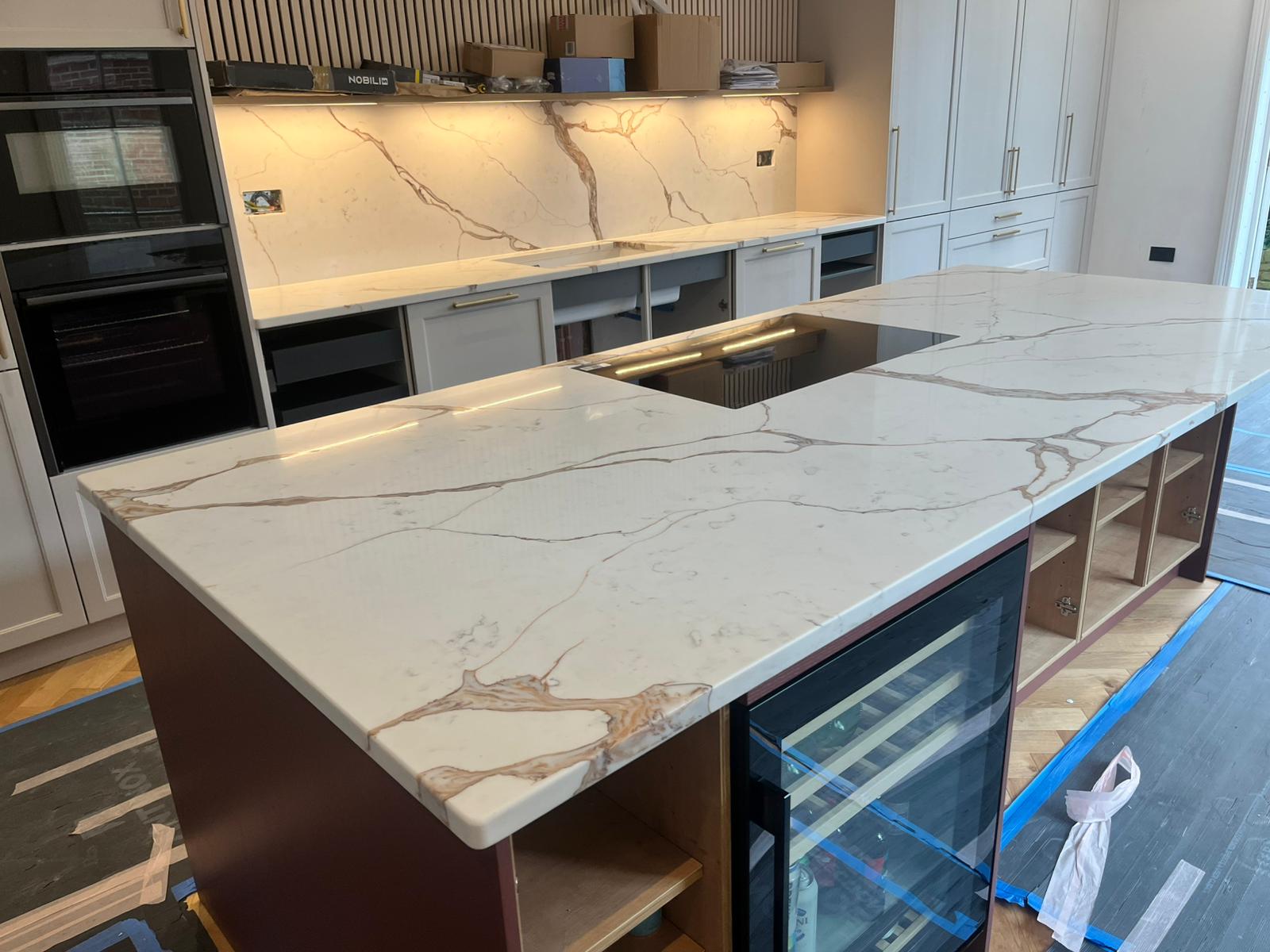 Nile Calacatta Oro screams a classy representation at its best, where the base of whites and grays dances to brilliant golden copper lines. It pays tribute to the beautiful and classic quality of Calacatta Oro marble. This luxurious design stands testament to the sophistication and timelessness that a Nile Quartz worktop may afford; seamlessly combining the classical beauty of marble with durability and ease of maintenance for which quartz has become noted. Ideal for anyone looking to create the kind of luxurious, durable infusion in their space, Nile Calacatta Oro quartz offers a beautiful, low-impact surface that stands up to time in both style and function.