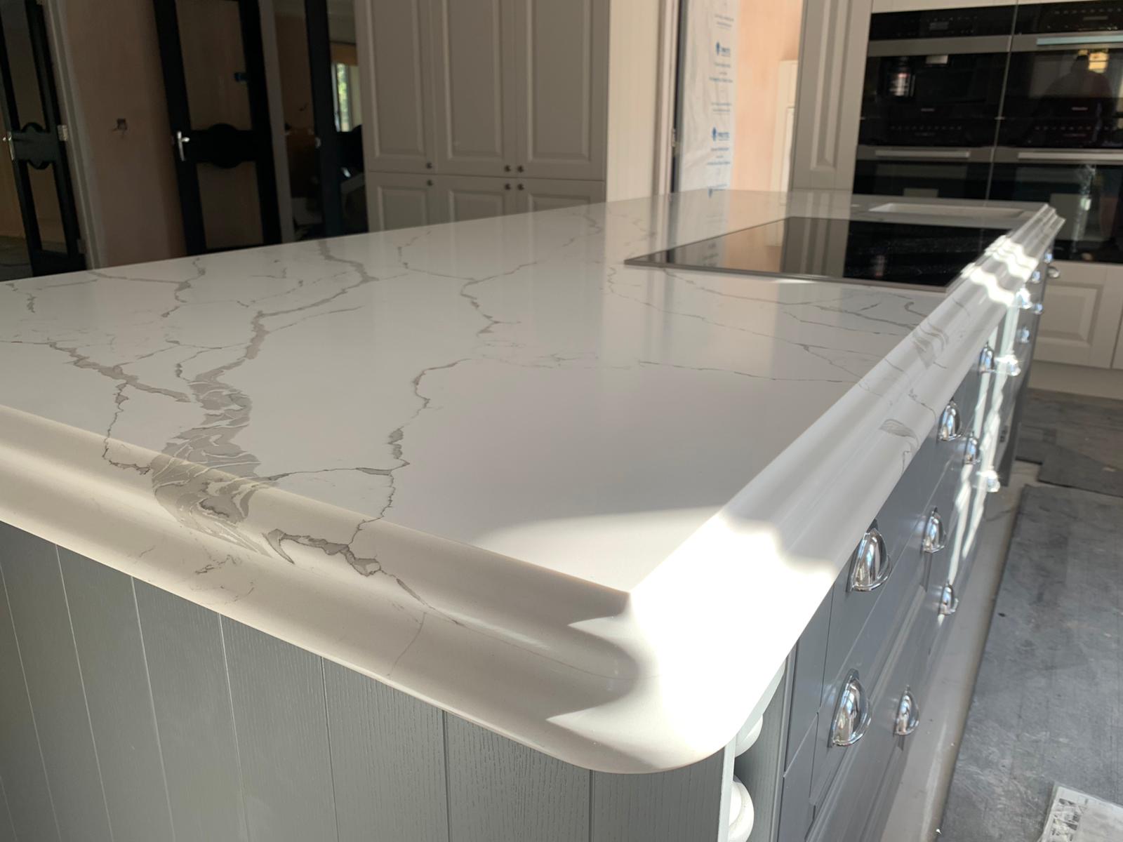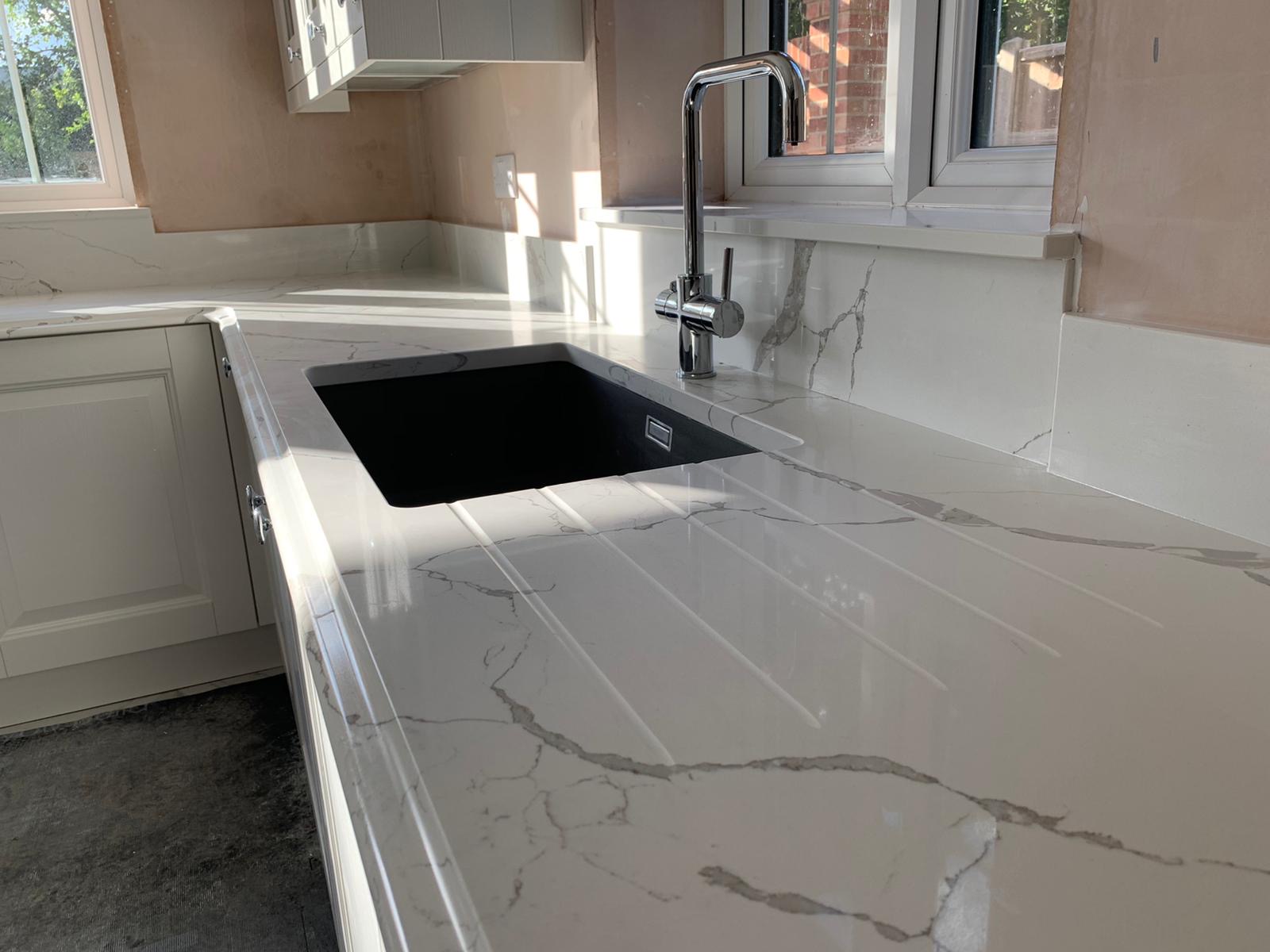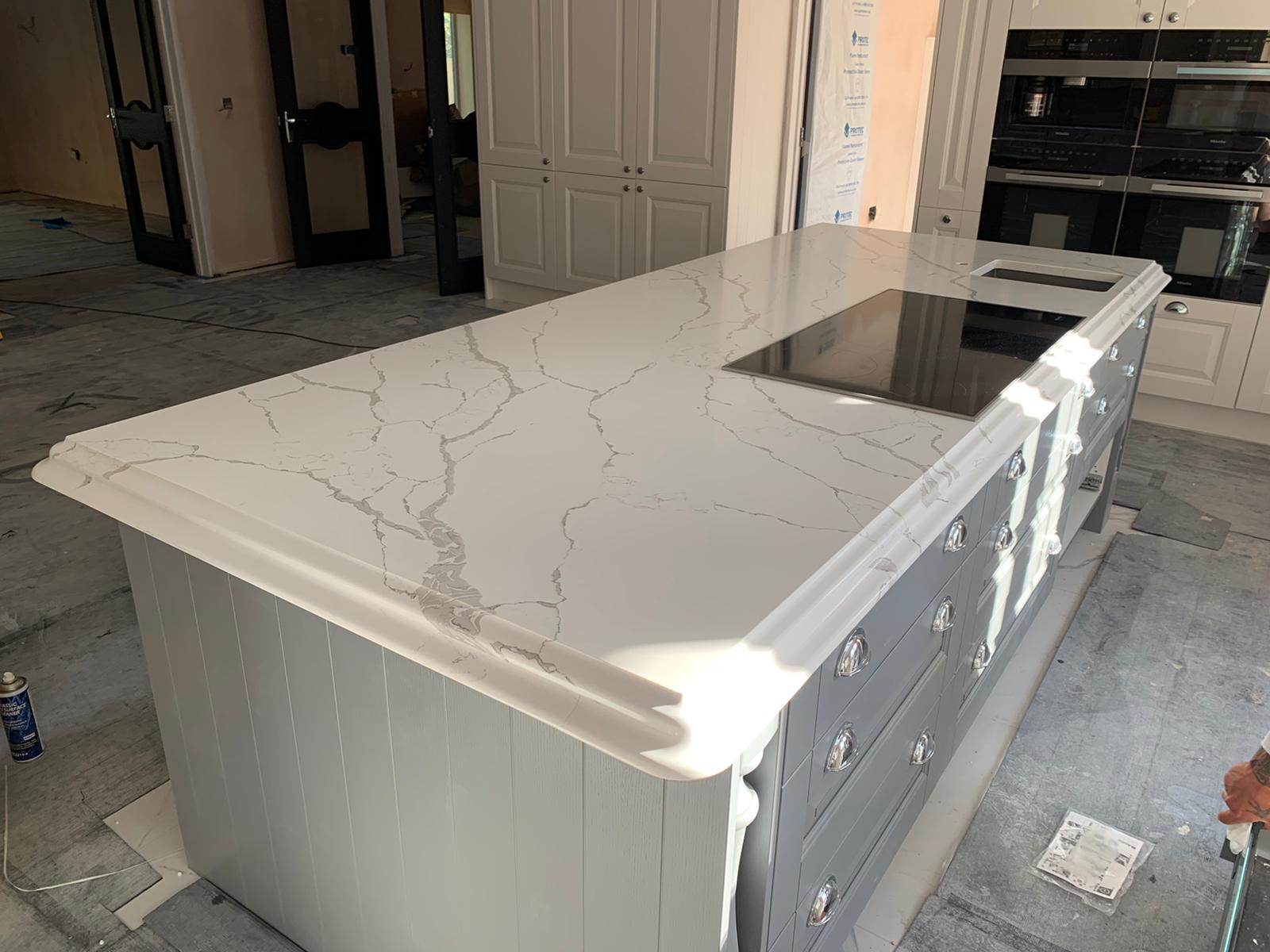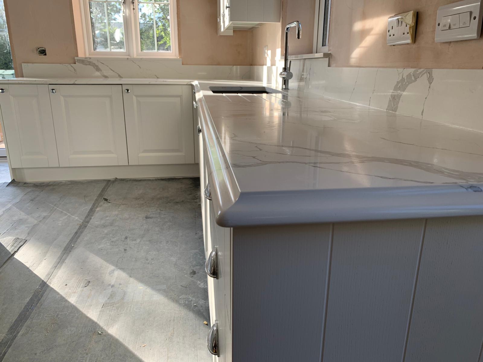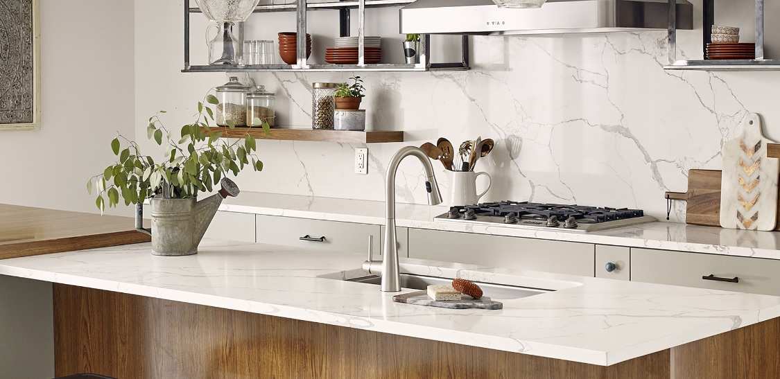 Transform your kitchen with the elegant calacatta venato quartz countertops. This luxurious quartz surface mimics the classic beauty of Italian marble, featuring a clean white background with striking grey veins that create a sophisticated and timeless look. Perfect for both modern and classic kitchen designs, calacatta venato quartz adds a touch of luxury to any interior.