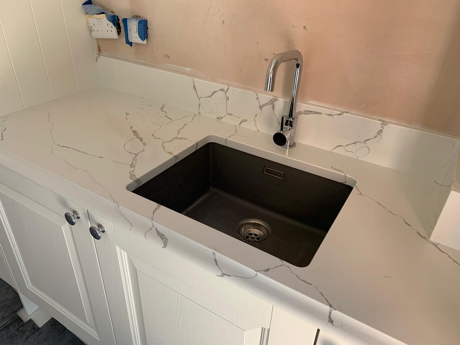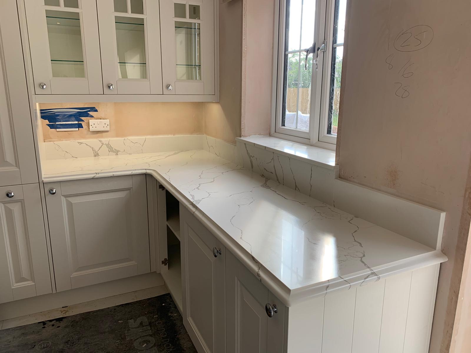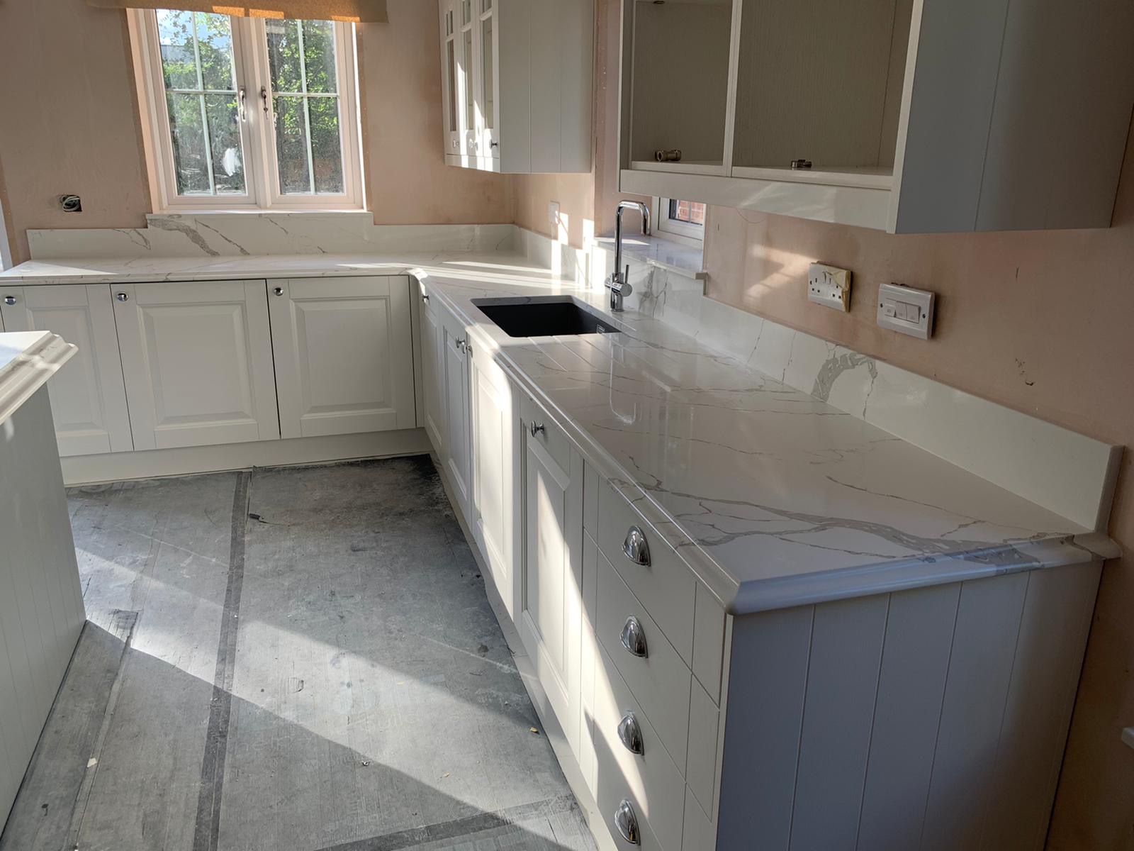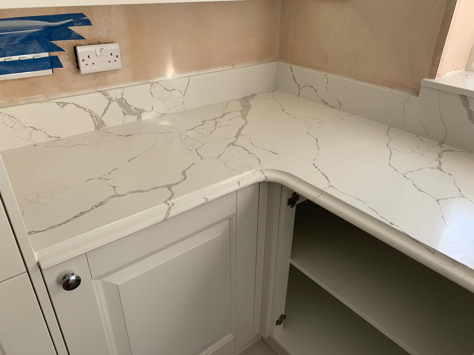 Transform your kitchen with the elegant calacatta venato quartz countertops. This luxurious quartz surface mimics the classic beauty of Italian marble, featuring a clean white background with striking grey veins that create a sophisticated and timeless look. Perfect for both modern and classic kitchen designs, calacatta venato quartz adds a touch of luxury to any interior.