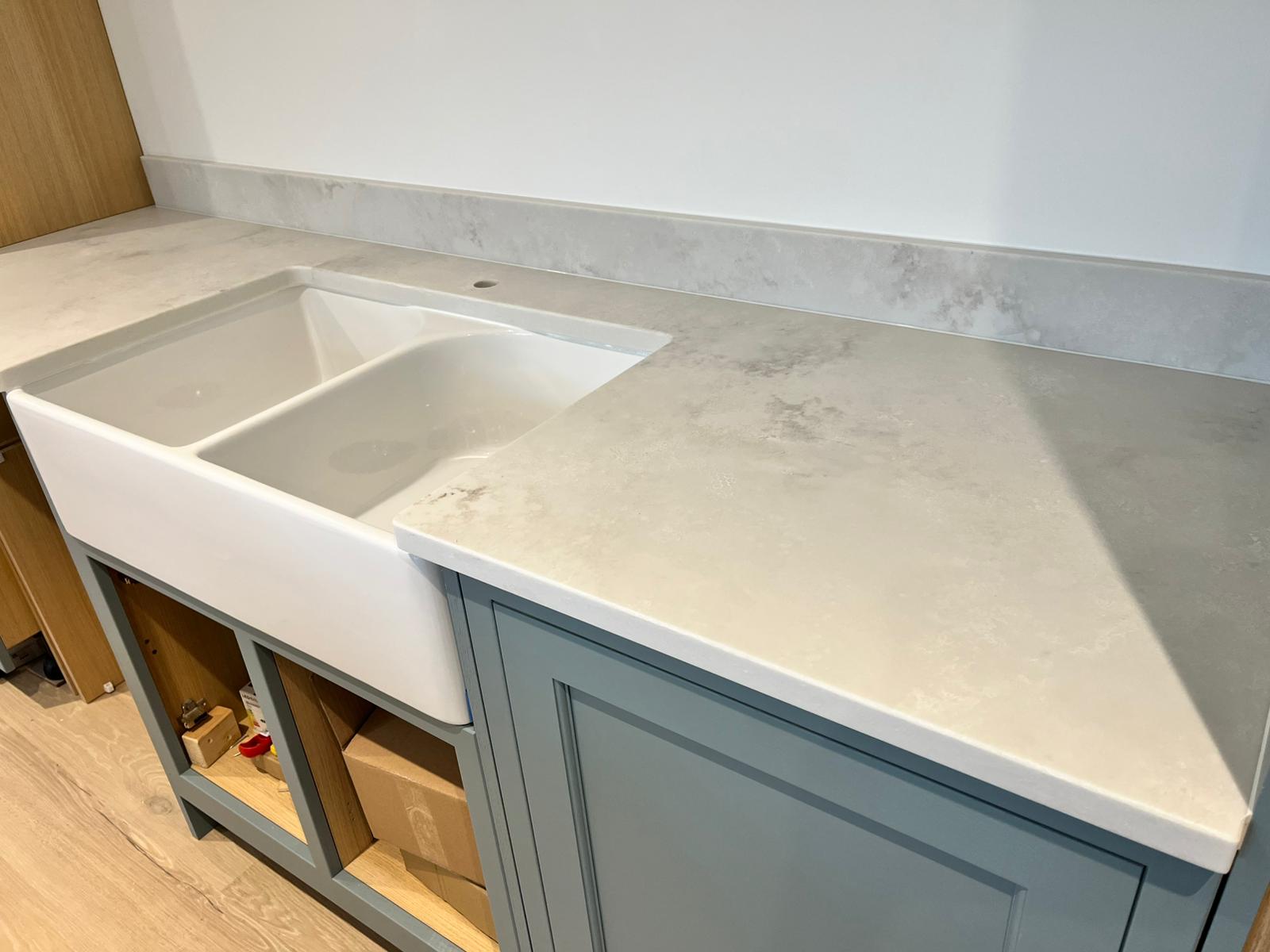 Cloudy Gris Silk- Cloudy Gris Silk Quartz captures the essence of understated luxury with its pale, misty grey background and delicate, diffused mottling. Its soft, matte ‘silk’ finish offers a tactile warmth that distinguishes it from high-gloss surfaces, creating a serene, modern atmosphere—perfect for minimalist kitchen islands, calming bathroom vanities, and seamless splashbacks that require a sophisticated, neutral canvas.