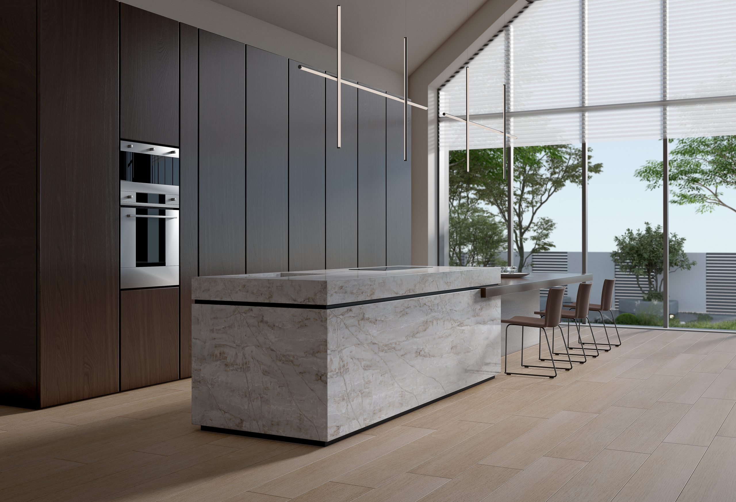 Sand Storm Quartz features a warm, light-toned base enriched with layered beige, taupe and soft grey markings that drift naturally across the surface. The linear movement and subtle tonal variation evoke the organic textures of natural stone, creating a calm yet characterful appearance. This versatile design works beautifully in contemporary kitchens, refined bathroom spaces and elegant feature walls.