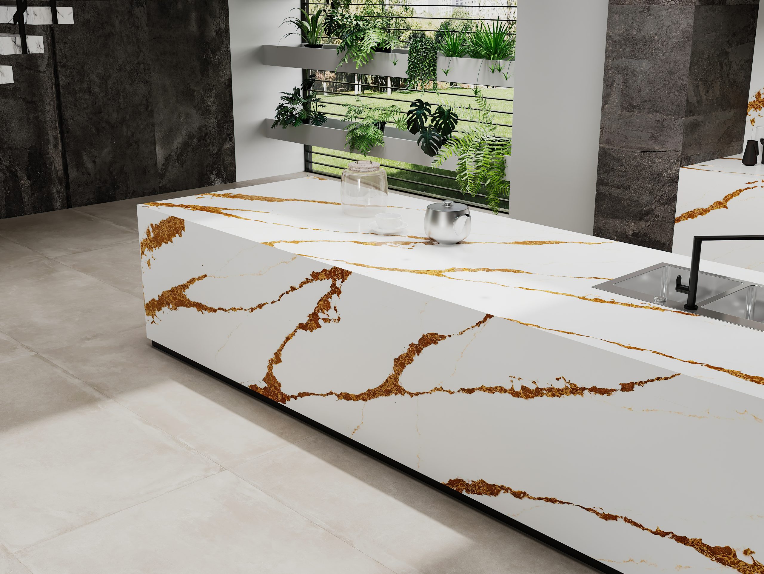 Crafted to balance style with performance, Glitter Lava Quartz is built for everyday use. Its non-porous, durable surface is resistant to stains, scratches and moisture, offering a practical, low-maintenance solution that maintains its striking appearance even in high-traffic spaces.