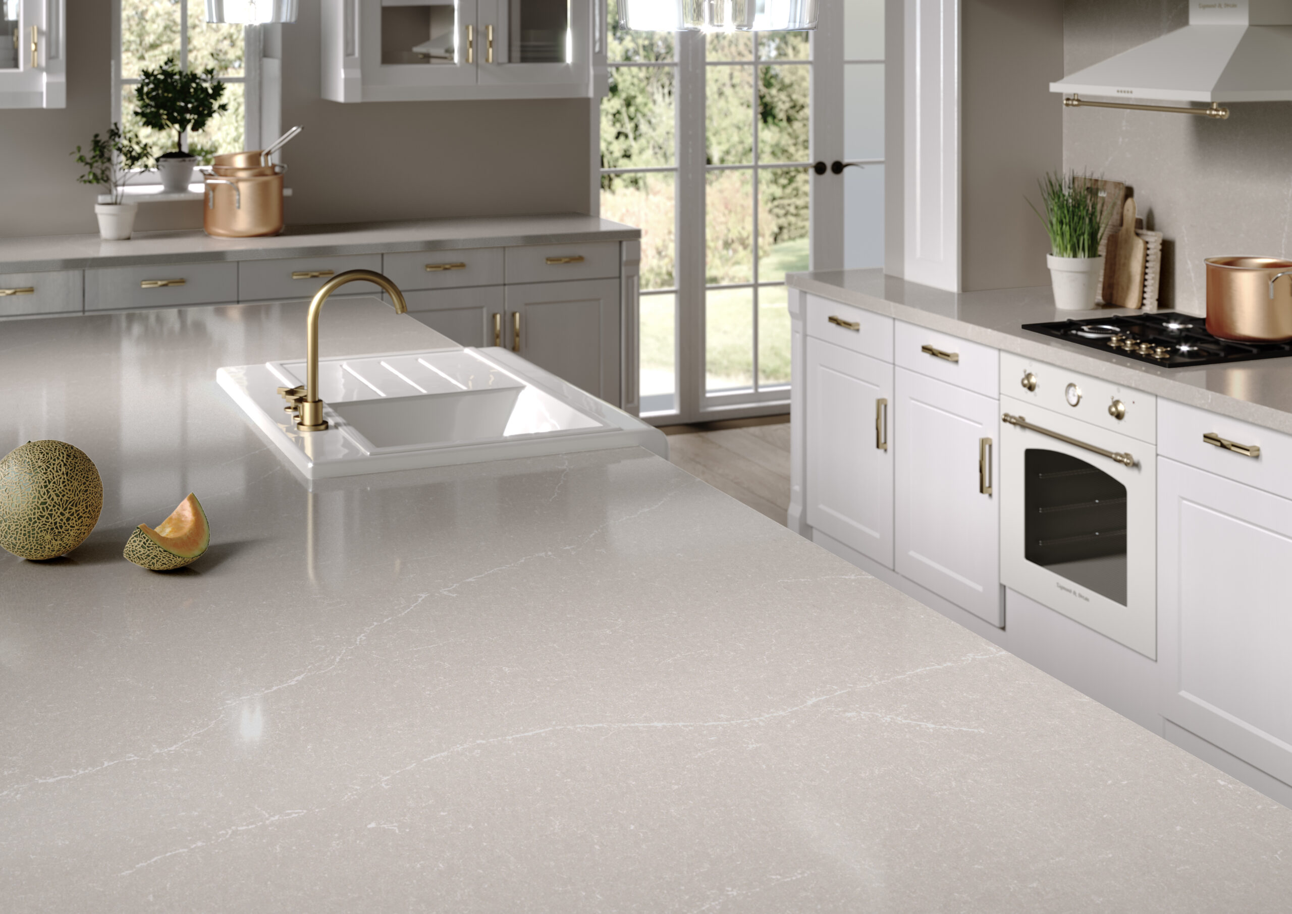 The epitome of chic sophistication, the Desert Silver quartz worktop is the perfect method of adding elegant style into your home. Featuring a pale grey base topped with subtle white veining, this worktop is guaranteed to complement a wide array of interior styles and colour schemes without ever appearing overwhelming or ‘too much’. Better still, Desert Silver is equally compatible with both kitchens and bathrooms, making it a truly versatile option able to furnish numerous spots within your home. Made using a cutting-edge blend of natural siliceous quartz (one of the toughest raw materials known to man) blended with specially selected resins and pigments, Desert Silver boasts a truly remarkable structure guaranteed to stand the test of time. Resistant to multiple forms of abrasion and easy to maintain with minimal care, Desert Silver will become a well-loved member of your home interior.
