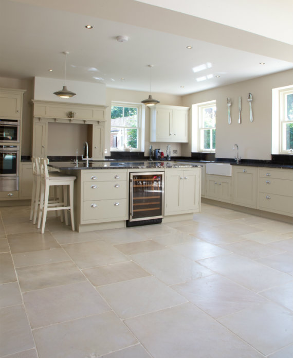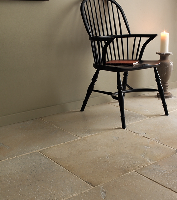 These grand rustic flagstones are reminiscent of old Portland limestone with ivory to buff tones and a natural riven surface which we gently smooth down with a tumbling process.
