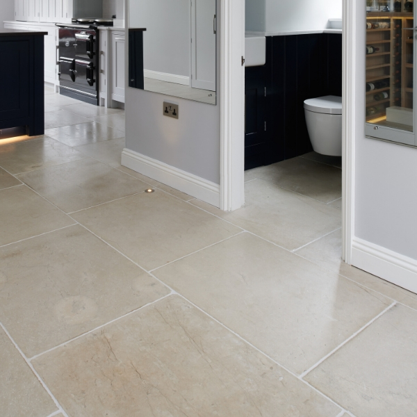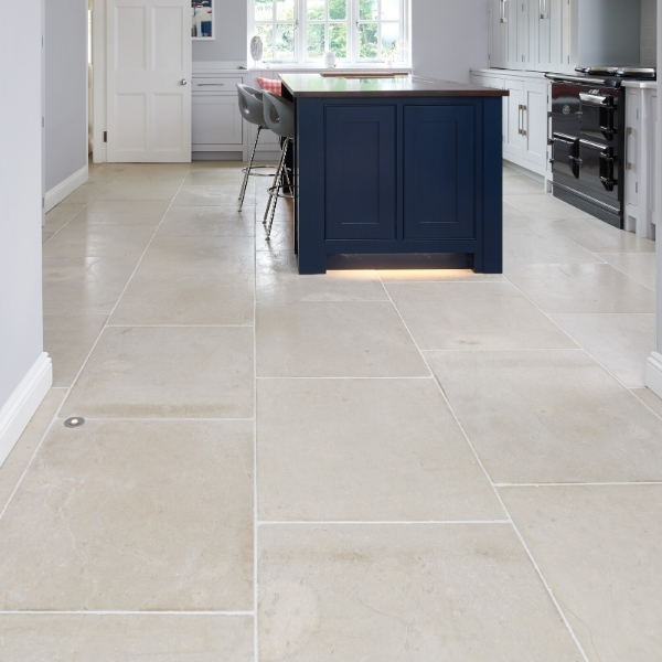 The powder-soft colouring and texture of this limestone belie its strength. It’s perfect for a modern townhouse or country kitchen.