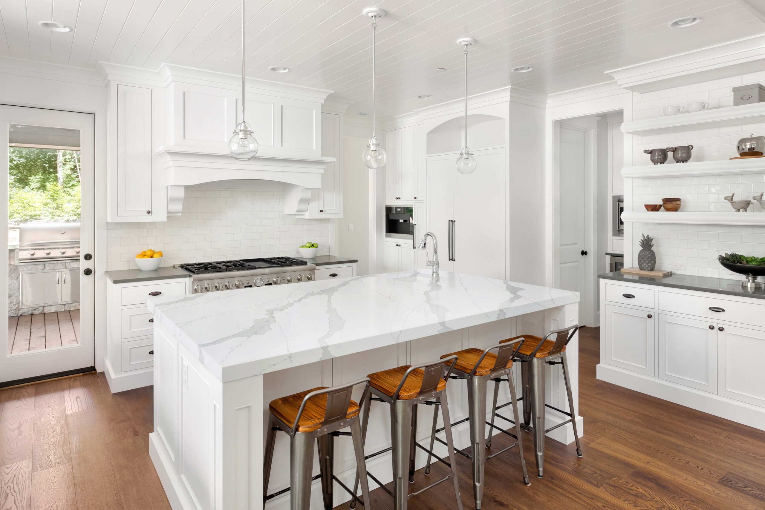 Guaranteed to enhance brightness and provide a welcoming atmosphere to your room of choice, the Eternal Calacatta Gold quartz countertop is a true triumph. Able to effortlessly reflect light and appear luxurious in all settings, this worktop features a crisp white base topped with expansive marbling.
