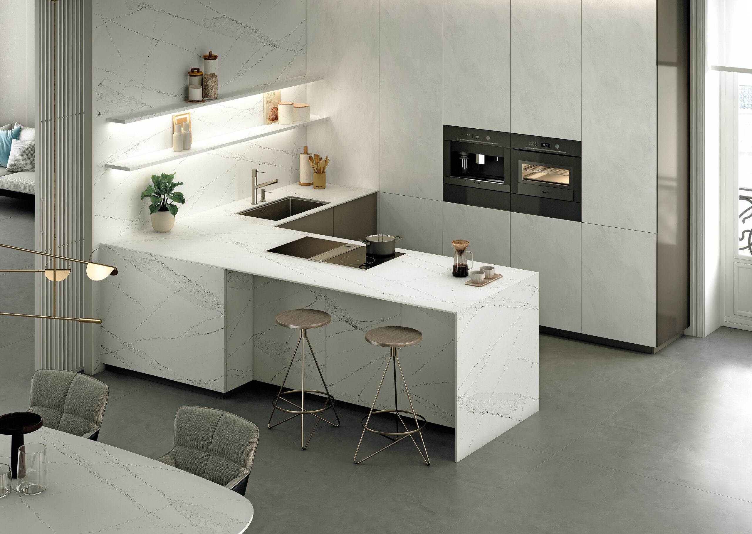 Infuse your kitchen with the dreamlike elegance of Silestone Ethereal Haze worktops. This exceptional surface captivates the eye with its soft, misty hues that evoke the serene beauty of a morning fog. Delicate, cloud-like veining in gentle tones drifts across the pale backdrop, creating a mesmerising pattern that adds depth and movement without overwhelming. This subtle, ethereal beauty lends an air of refined sophistication, seamlessly blending classic grace with contemporary minimalism to create a truly breathtaking aesthetic. Crafted from durable, low-maintenance quartz, Ethereal Haze offers outstanding performance to withstand the rigours of daily life, ensuring your worktops retain their flawless, pristine appearance for years to come. Elevate your kitchen with the unparalleled beauty and exceptional functionality of Silestone Ethereal Haze – the centrepiece your dream kitchen deserves.
