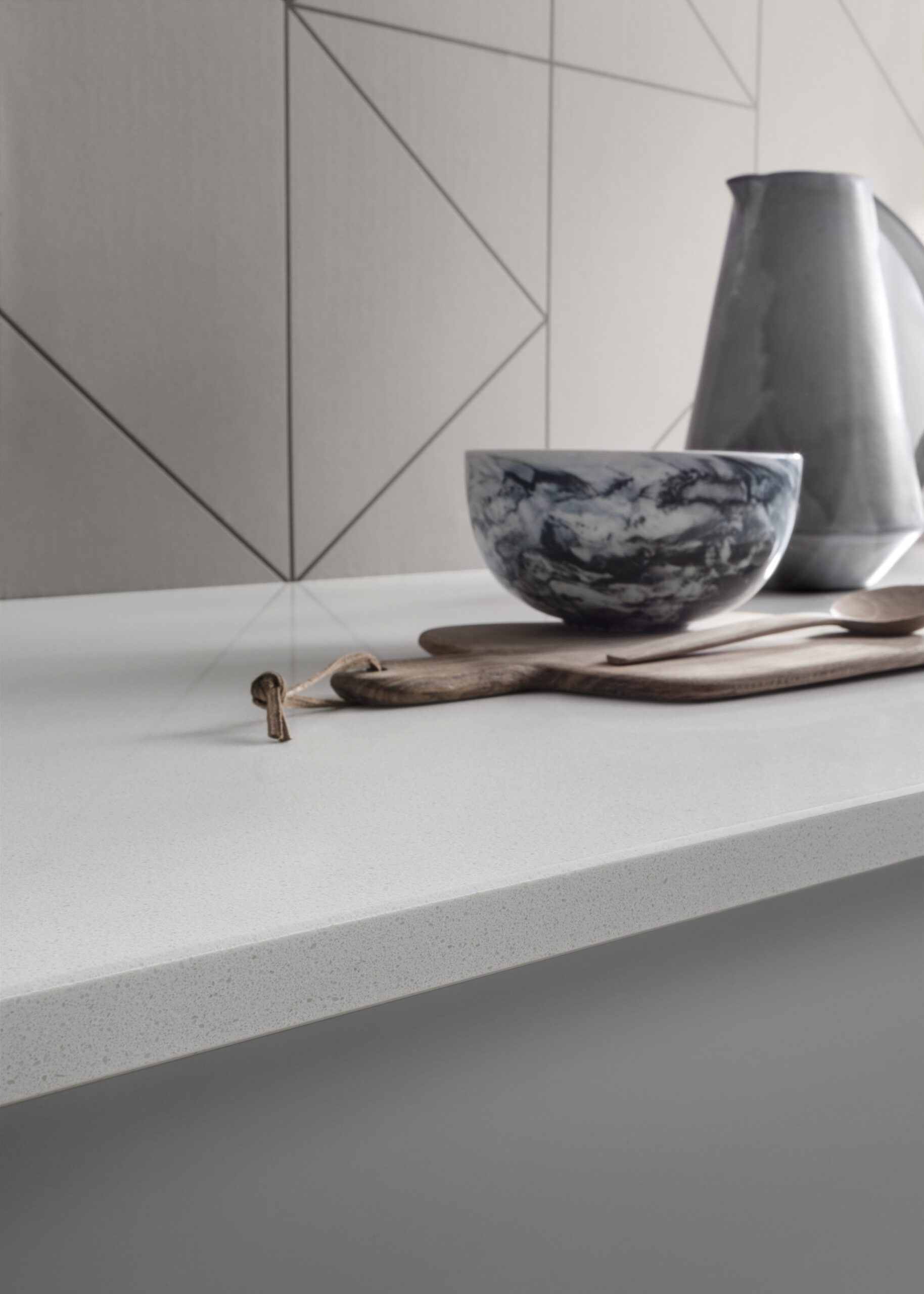 Effortlessly sophisticated and versatile, the Everest White quartz worktop is a great choice if you want to avoid bright colours and wild patterns when furnishing your home. Featuring a simplistic cream base topped with light speckling, the versatility of this worktop is second-to-none. Able to complement virtually any existing interior your home has, Everest White can be placed in both kitchens and bathrooms without incurring damage or becoming worn. In fact, the structure of this worktop has been specifically designed with optimum durability in mind. Carefully fashioned using a specialist blend of tough natural quartz and top-quality resins, Everest White is incredibly resilient and resists scratches, heat and water. Certain to maintain its sleek appearance for a long time to come, this worktop wonāt let you down.