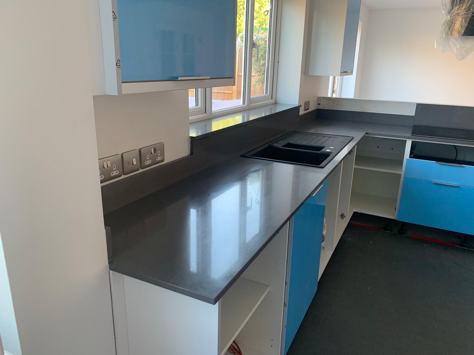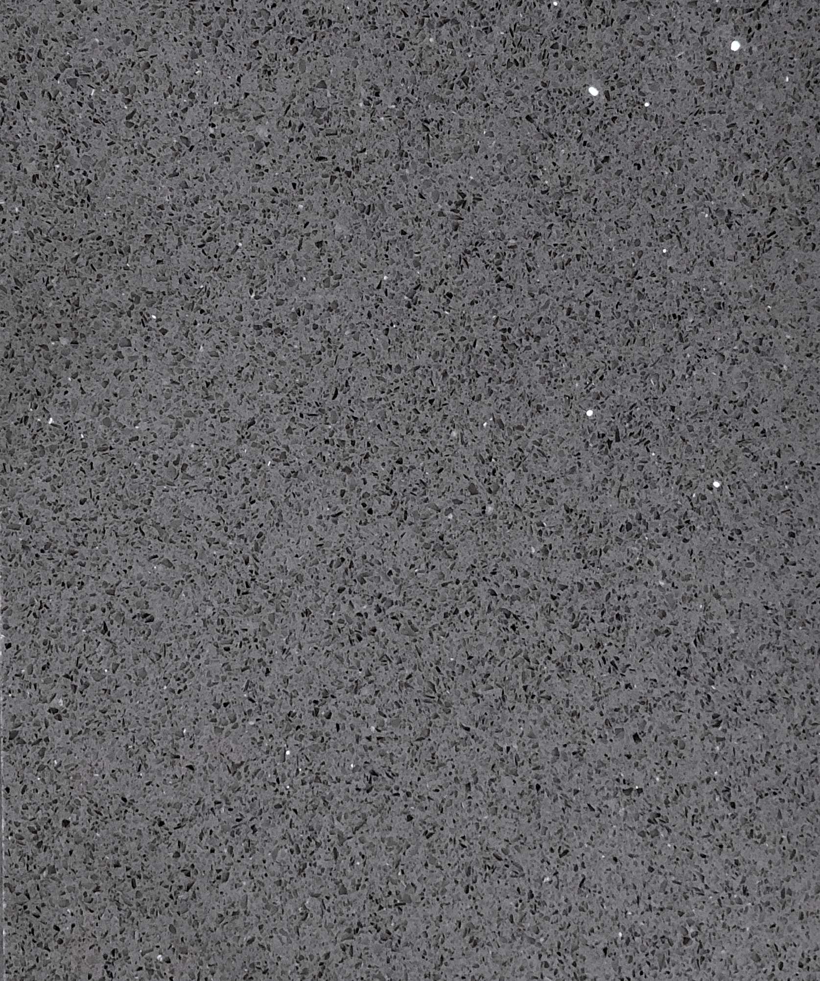 Specifically designed to display the illusion of subtle sparkle, this Grey Shimmer quartz worktop is simply stunning. Featuring a deep grey base topped with darker speckling, its design is peppered with sparse white brightness to create the effect of shimmering stars in the night sky. Captivating and stylish, Grey Shimmer is compatible with both kitchens and bathrooms due to its superbly durable structure. Made using premium natural quartz (one of the toughest raw materials found on the planet) carefully blended with first-rate pigments and resins, the durability of this worktop is sure to impress. Able to maintain its sleek appearance for a long time to come due to its scratch-resistant properties, Grey Shimmer is extremely resilient. Certain to serve your home for many years to come without compromising on style, Grey Shimmer is a true triumph.