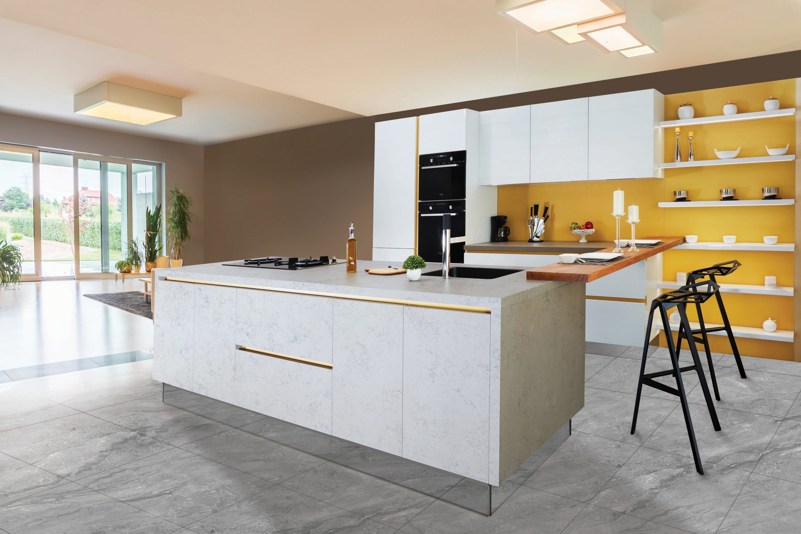 Elevate your interior with the Horizon Marble Stratus Quartz Worktop—a testament to quality craftsmanship and enduring elegance.