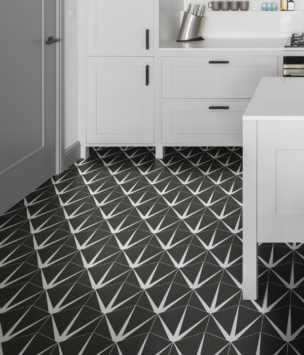 We have invested in a patented design to make our Lily Pad Encaustic tile available in a porcelain tile too. This collection offers staple interior colours, suitable for any kitchen, bathroom or living space. The tiles are machine-made, need little maintenance and are thinner than their cement sister, making them ideal for wall installation.