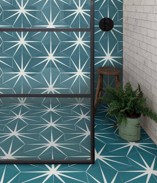 We have invested in a patented design to make our Lily Pad Encaustic tile available in a porcelain tile too. This collection offers staple interior colours, suitable for any kitchen, bathroom or living space. The tiles are machine-made, need little maintenance and are thinner than their cement sister, making them ideal for wall installation.