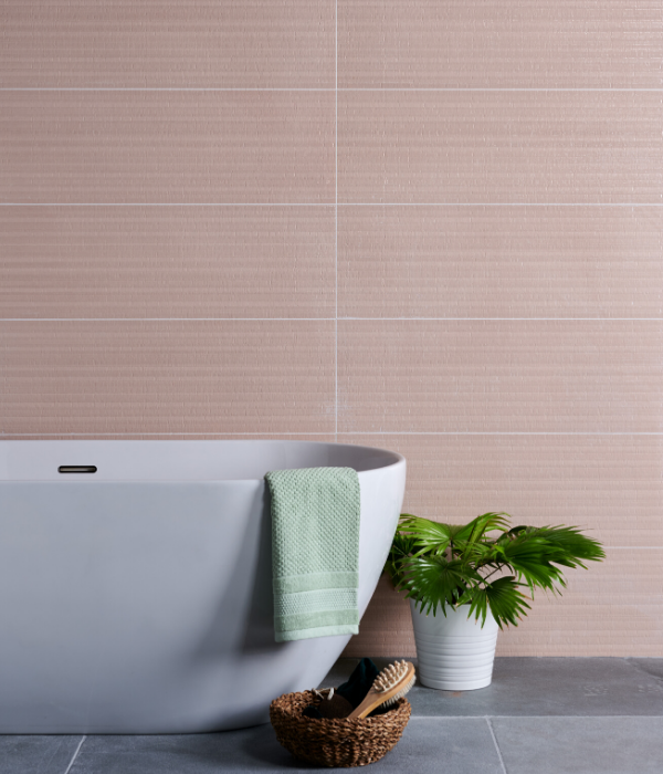 For a beautiful finish to bathrooms, our latest Loom ceramic tile is a large format 90cm x 30cm design, which features a textural ripple effect on its surface.