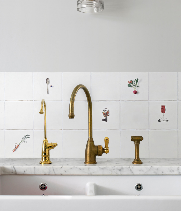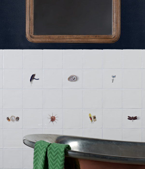 Our exclusive collaboration with British designer Michael Angove. Lay the patterned tiles in random formations for ultimate impact on a kitchen splashback or behind a freestanding bath.