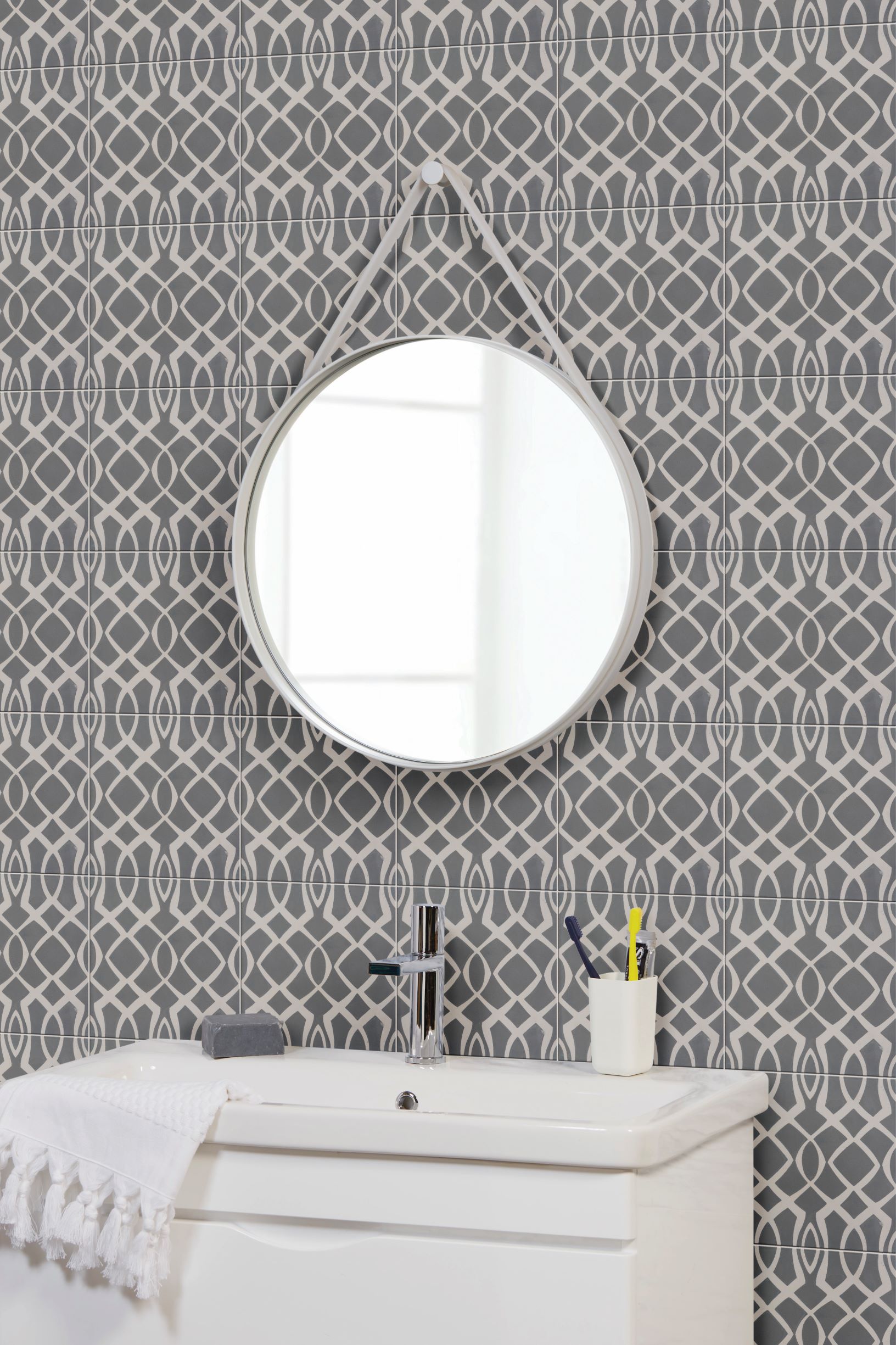 Modern Lattice features an intricate trellis pattern set against a colourful background. There are three colours to choose from, a vibrant yellow, Moroccan blue and a subtle pale grey.