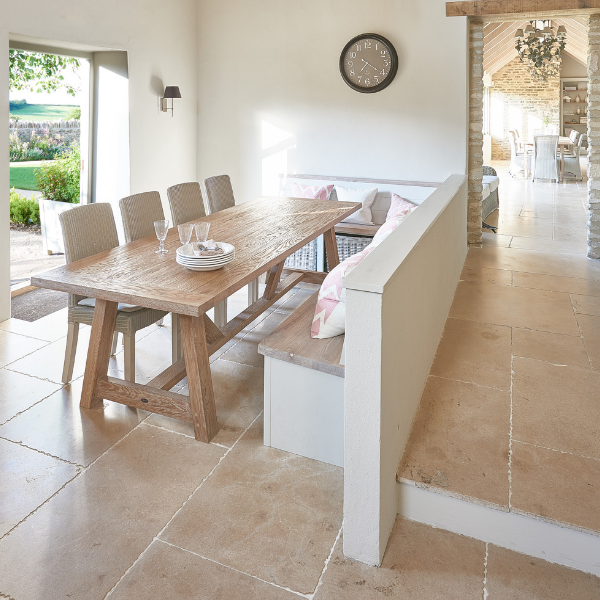 These flagstones have a rich, warm colour reminiscent of a West Country farmhouse. The fossil and sedimentary markings mean it could easily be mistaken for an English stone. It is also very hard, which makes it ideal for flooring.