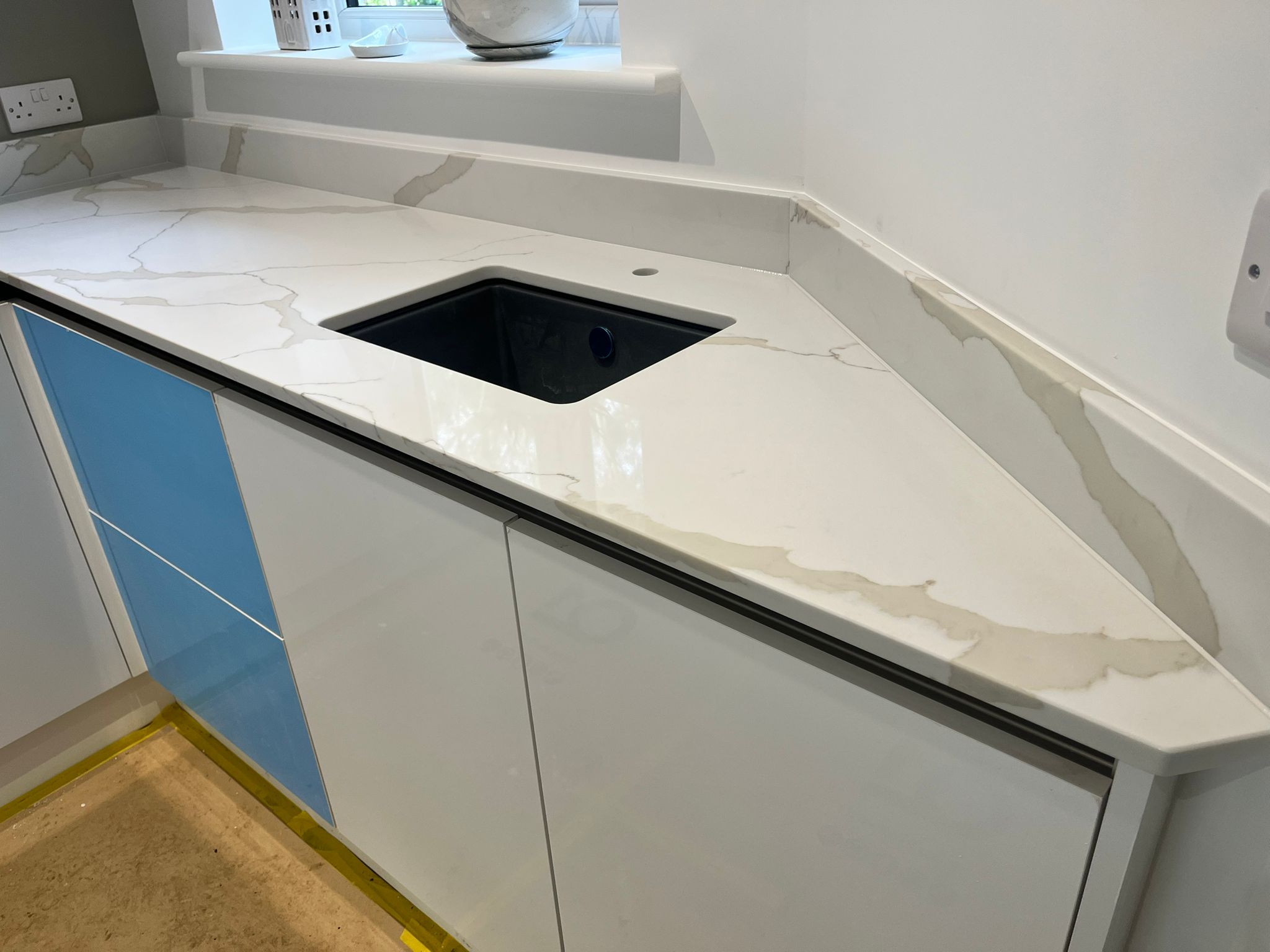 Compatible with both kitchens and bathrooms due to its impressively waterproof surface, this Calacatta white quartz is low maintenance and requires minimal effort to keep looking brand-new. Made using a specialist blend of natural quartz (one of the toughest raw materials known to man) bonded with selected pigments and resins, white calacatta quartz is incredibly durable. Resistant to many forms of abrasion and able to withstand many forms of wear and tear, it is an excellent choice for busy homes.