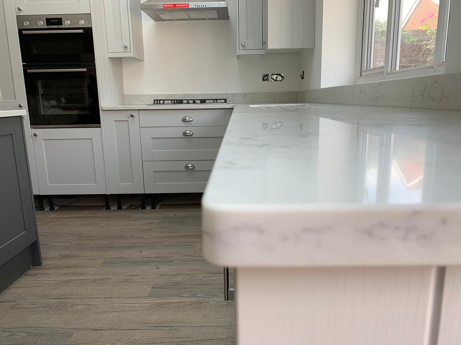 To learn more about Nile Carrara Quartz worktops or for a free quote, please get in touch. Call our friendly team today on 01329 844474. We look forward to hearing from you.