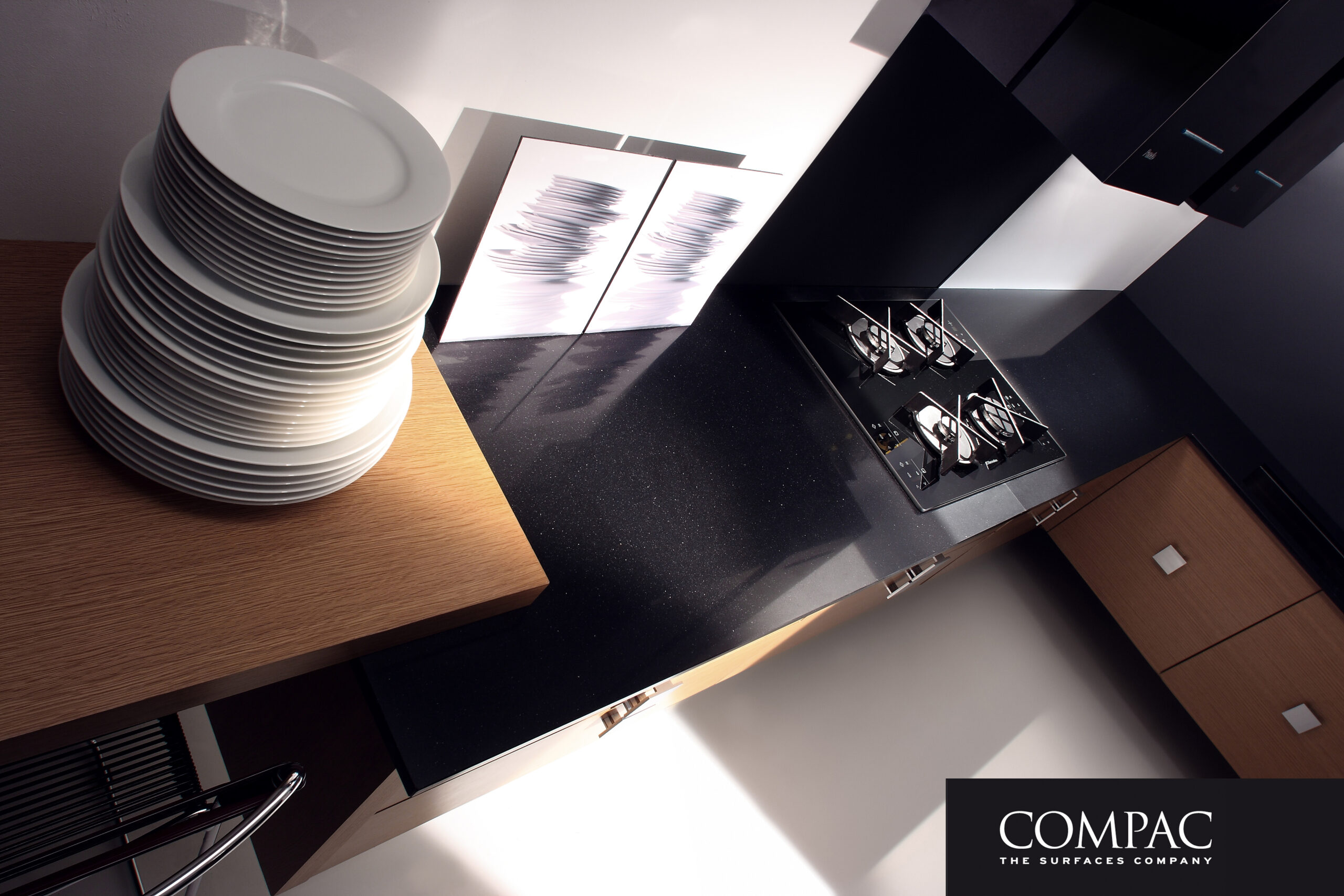 Deep and mysterious, the Nocturno quartz worktop is the perfect option if you’re looking to stray away from classic light-toned work surfaces within your home. Paying true homage to its namesake, this worktop boasts distinctive nocturnal inspiration with its dark black base and subtle white speckling. Reminiscent of the night sky and guaranteed to make a bold statement in your room of choice, the depth provided by this worktop is sure to captivate. Compatible with both kitchens and bathrooms due to its water-resistant surface, crafting bespoke expansive worktops and entire shower walls has never been more stylish. Made using premium natural siliceous quartz blended with first-rate resins and pigments, rich colour and intense durability are provided. Resistant to many forms of abrasion and sure to maintain its sleek appearance for a long time to come, Nocturno is an incredibly low-maintenance option and will serve your home for many years.