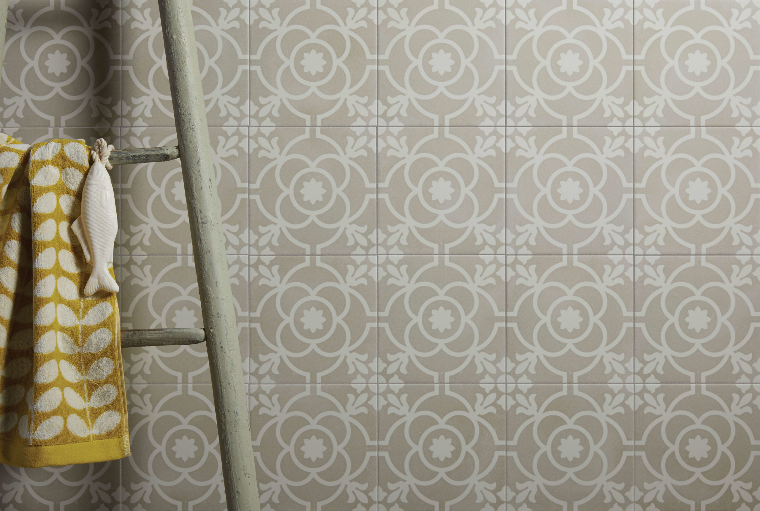 A replica of encaustic cement tile designs typically found in chic interiors and cafés of Paris. The muted, yet pretty, colour palette belies the inherent strength of these tiles and the added bonus of the low slip finish makes them highly versatile.