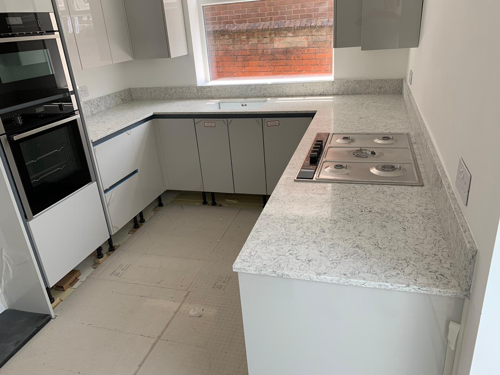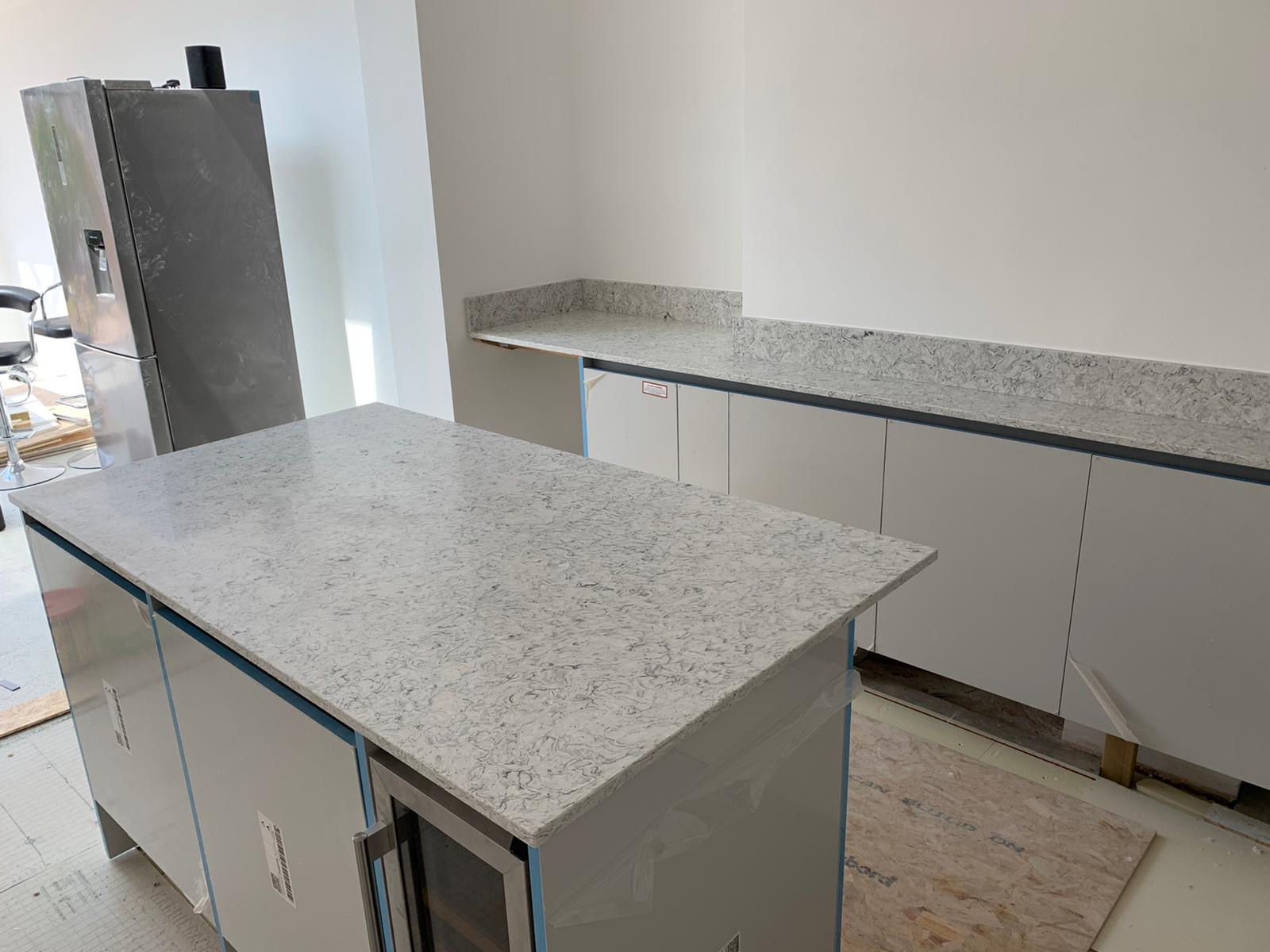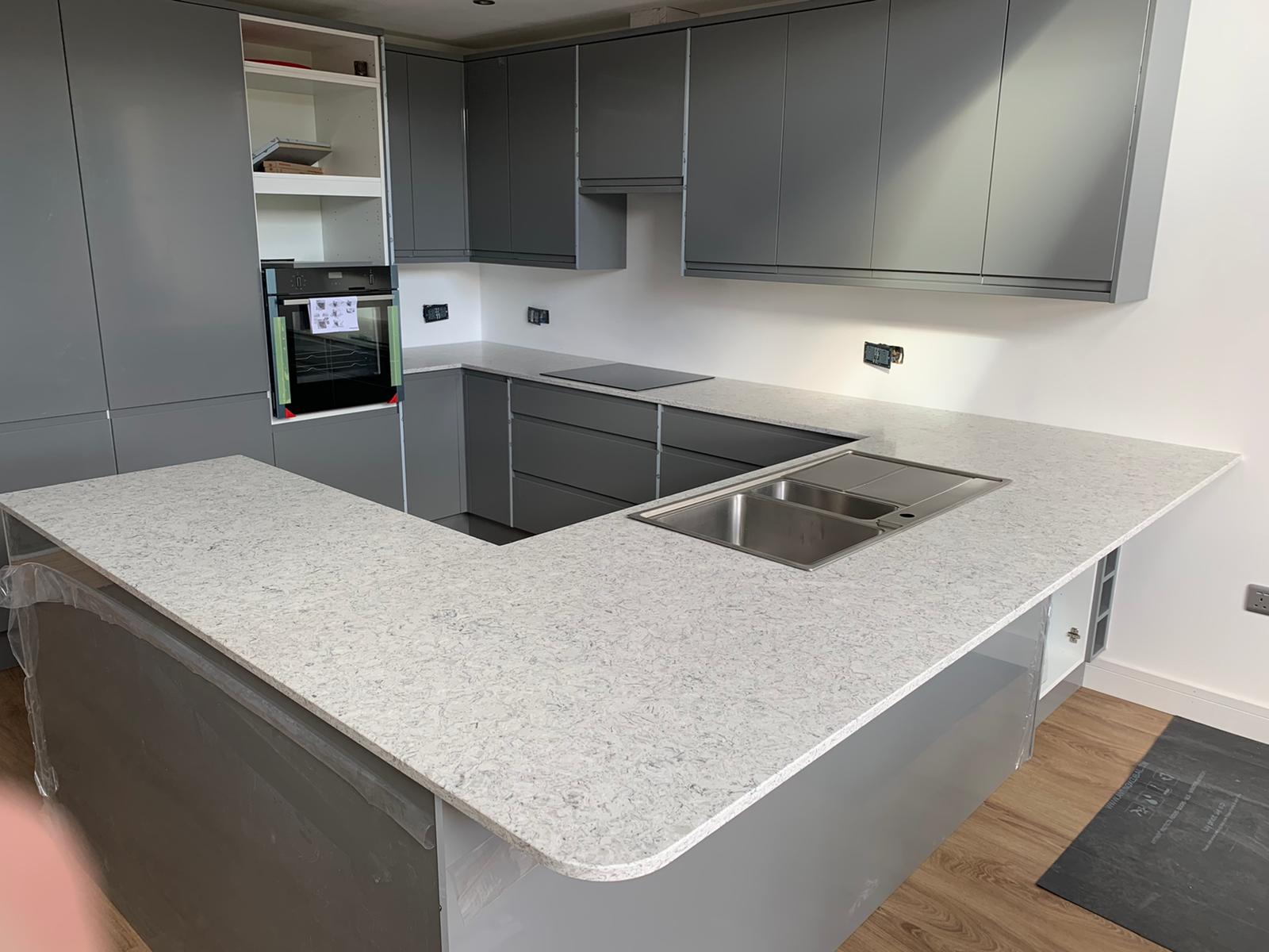 With its dynamic swirled design yet neutral colour scheme, the Rapture quartz worktop is superbly captivating without ever appearing overwhelming against your current interior style. Primarily featuring understated hues of grey, beige and cream, the simplistic colour scheme of this worktop allows it to effortlessly complement a wide variety of interior styles – no matter your personal taste. Able to be placed in both kitchens and bathrooms due to its waterproof and heat-resistant structure, the inner composition of natural quartz-sand granules combined with polyester resins guarantees optimum durability and strength. Incredibly robust against scratches and many other forms of damage, Rapture is sure to maintain its sleek appearance indefinitely with appropriate care. Easy to take care of and offering far more longevity than plastic, Rapture is sure to impress.