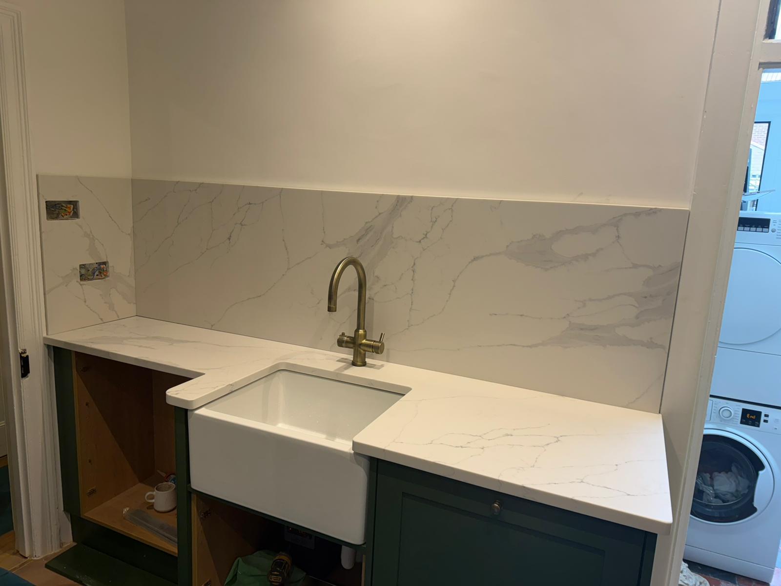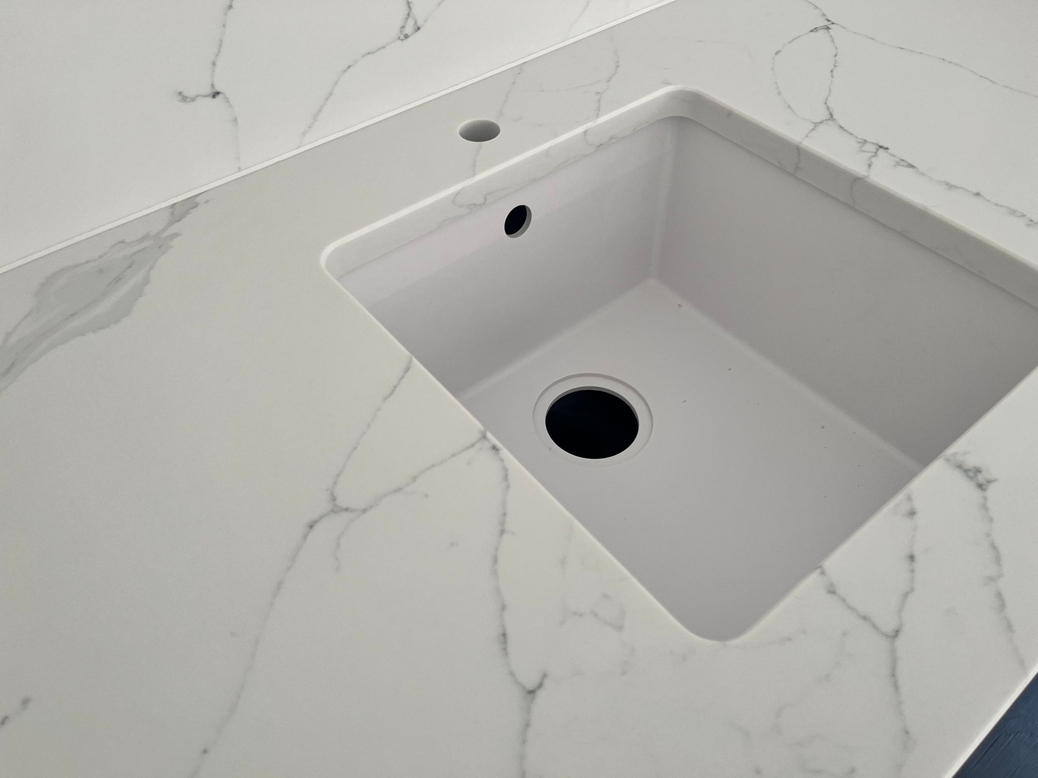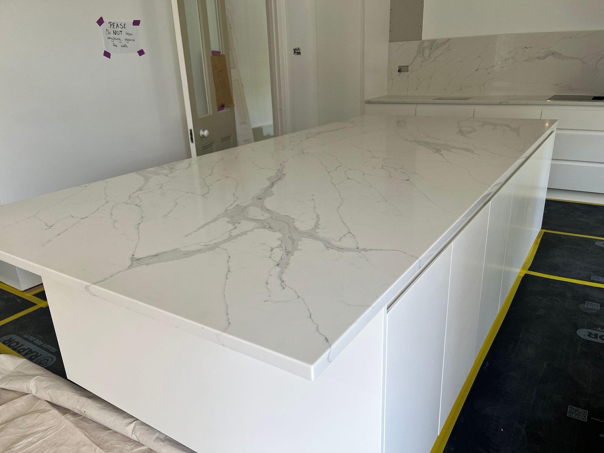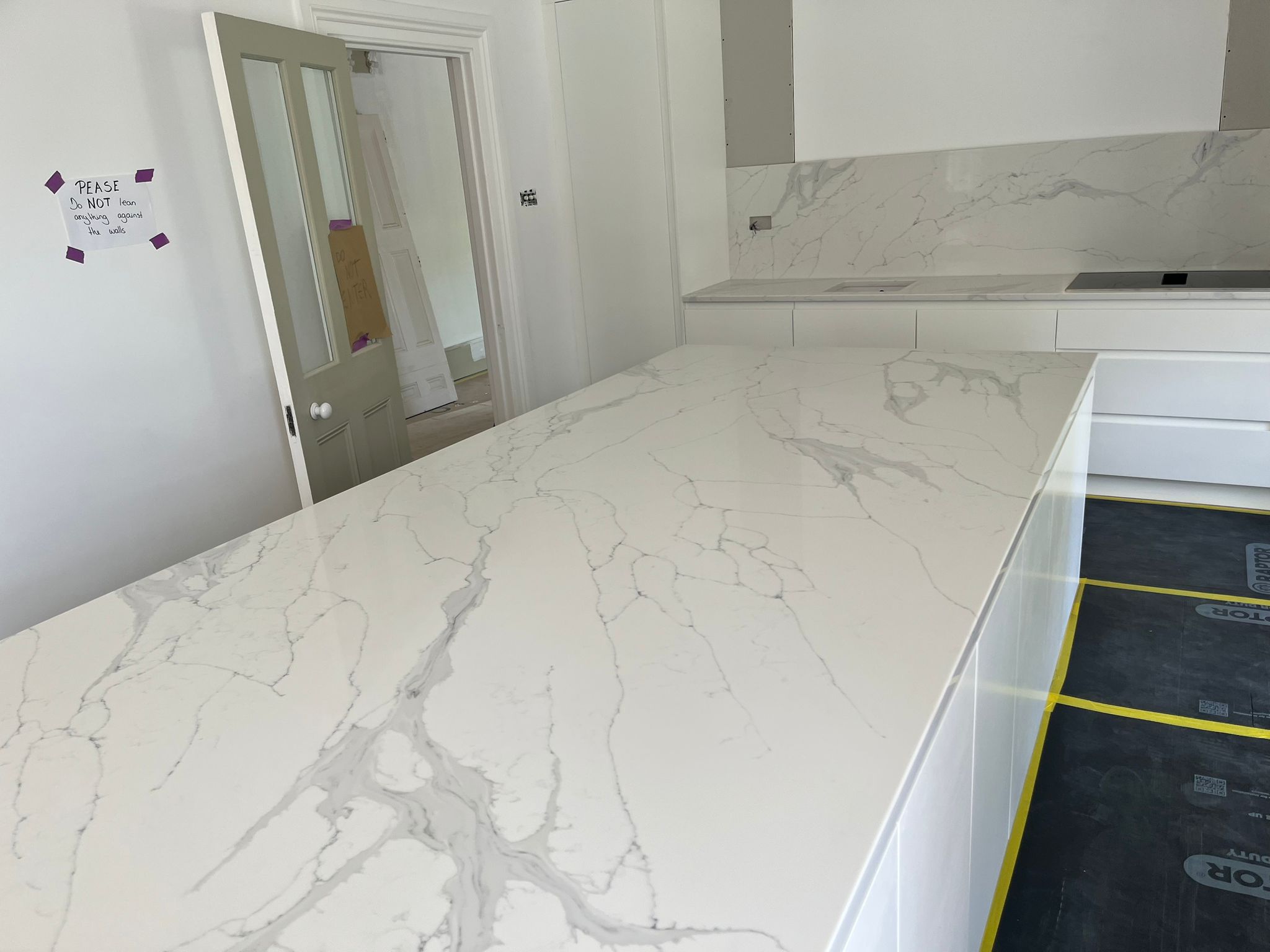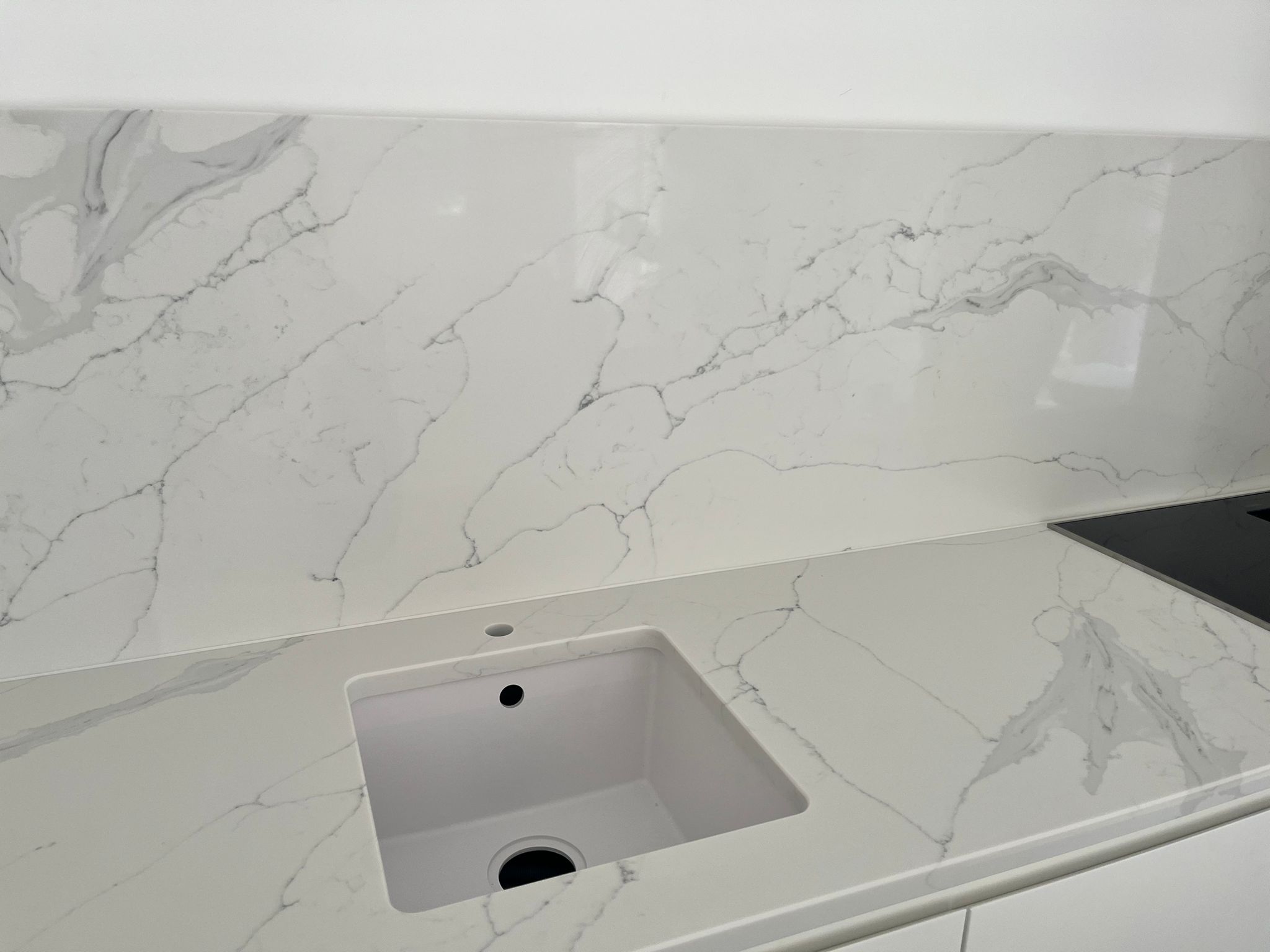 Venetian River- Venetian River Quartz features a soft white base beautifully enriched with gentle, flowing veining inspired by the movement of natural river stone. Its elegant patterning and serene character bring a sense of calm sophistication to any interior—ideal for bright kitchen worktops, stylish bathroom surfaces and refined feature walls that call for subtle, timeless beauty.