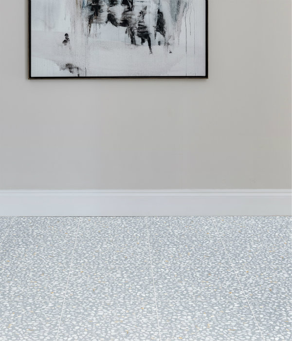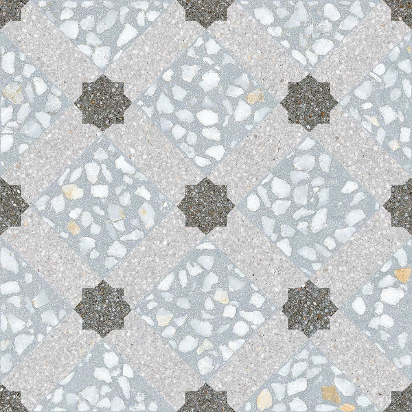 This versatile porcelain has been designed to replicate Venetian Terrazzo tiles. The pretty colour palette adds a contemporary twist to a traditional design and the decorative criss-cross pattern suits modern and period interiors alike. Suitable for interior floors and walls.