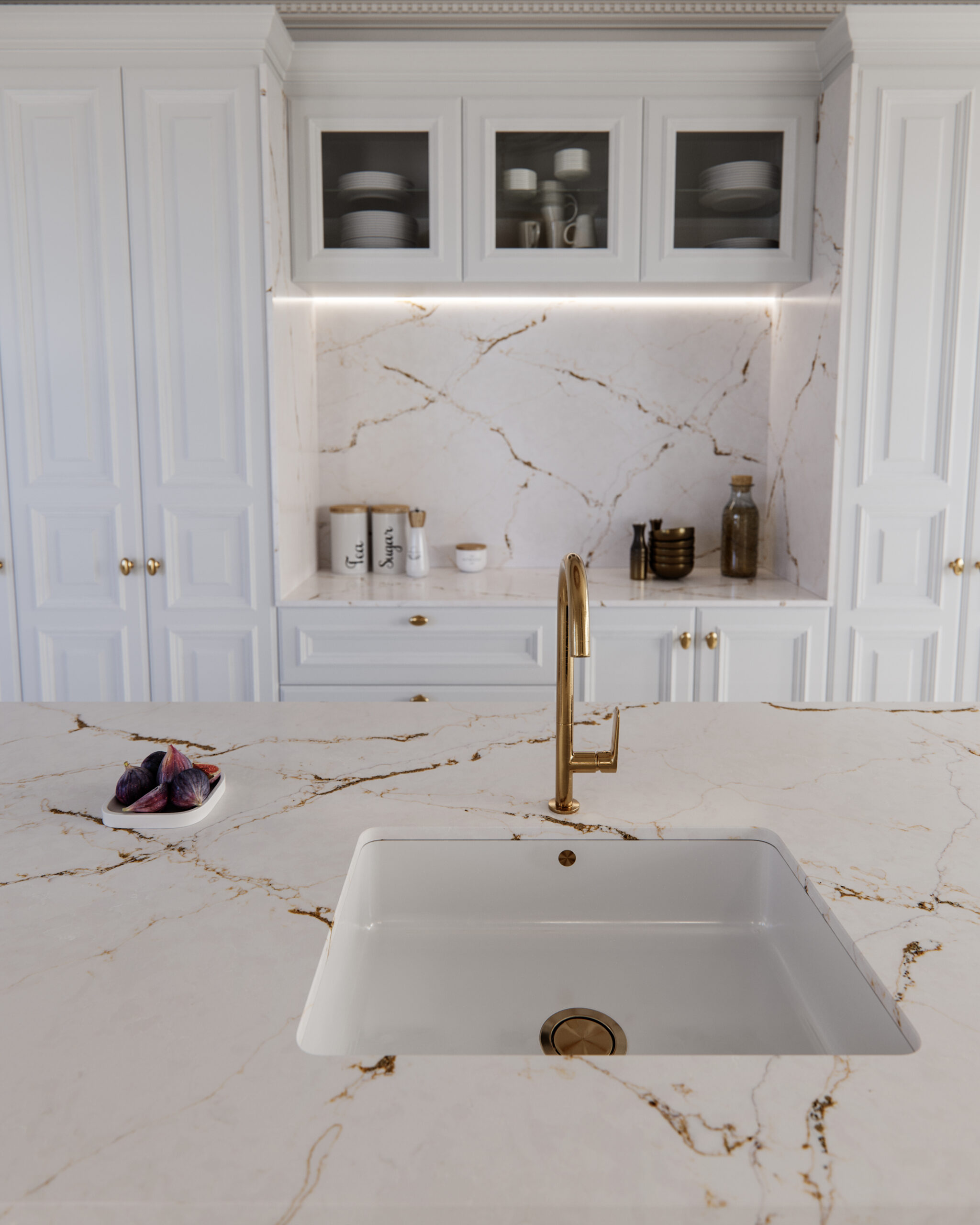 Versailles Ivory is not only visually stunning but also highly durable and practical, making it perfect for high-traffic areas like kitchens and outdoor kitchens. It is resistant to scratches, stains, and UV light, ensuring it maintains its beauty over time. The non-porous surface ensures easy cleaning and hygiene, requiring minimal maintenance.