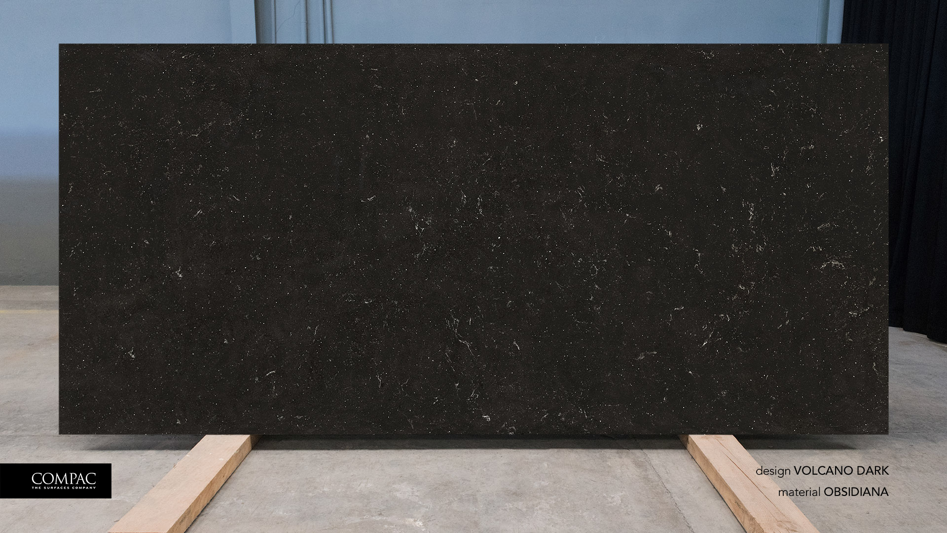 Elevate your kitchen with the captivating allure of Volcano Dark Compac Quartz worktops. Inspired by the raw, natural beauty of stone, this exceptional surface enchants the eye with its mesmerising, charcoal-hued pattern that dances across a backdrop of deep, moody tones. The striking, high-contrast design lends an air of dramatic sophistication, seamlessly blending classic refinement with a modern sensibility to create a truly breathtaking aesthetic. Crafted from durable, low-maintenance quartz, Volcano Dark offers outstanding performance to withstand the rigours of daily life, ensuring your worktops retain their flawless, pristine appearance for years to come. Indulge in the unparalleled beauty and exceptional functionality of Volcano Dark Compac Quartz – the centrepiece your dream kitchen deserves.